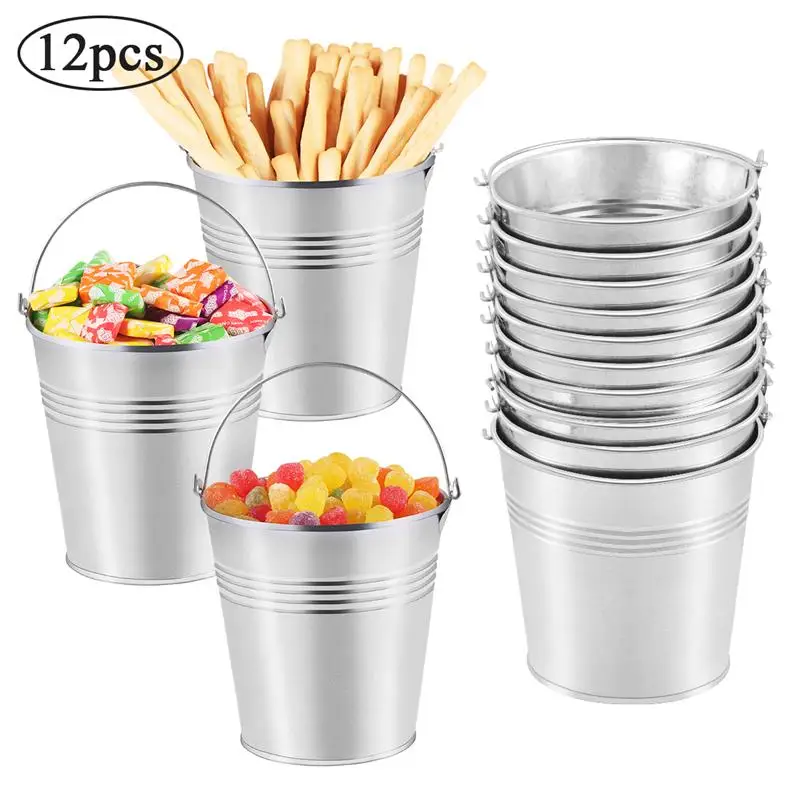 12 шт., металлические ведра, горшки, мини-ведра для жести, жестяная цилиндрическая жесть, мини ведро, глазурь, картофель фри, конфеты, закуски, жестяные палочки