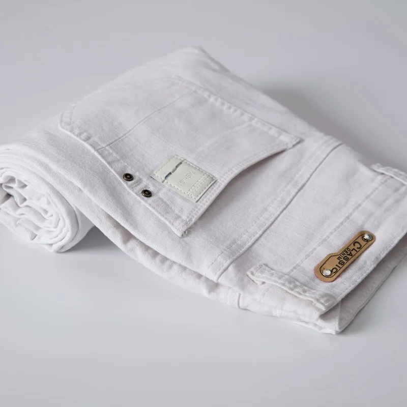 Мужские Стрейчевые обтягивающие джинсы, 7 цветов, модные повседневные облегающие джинсовые брюки, мужские серые, черные, хаки, белые брюки, размер 29-38