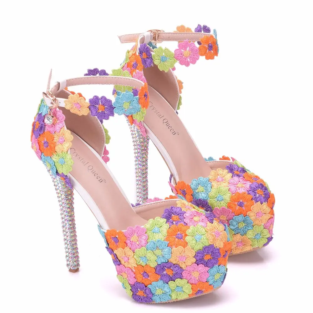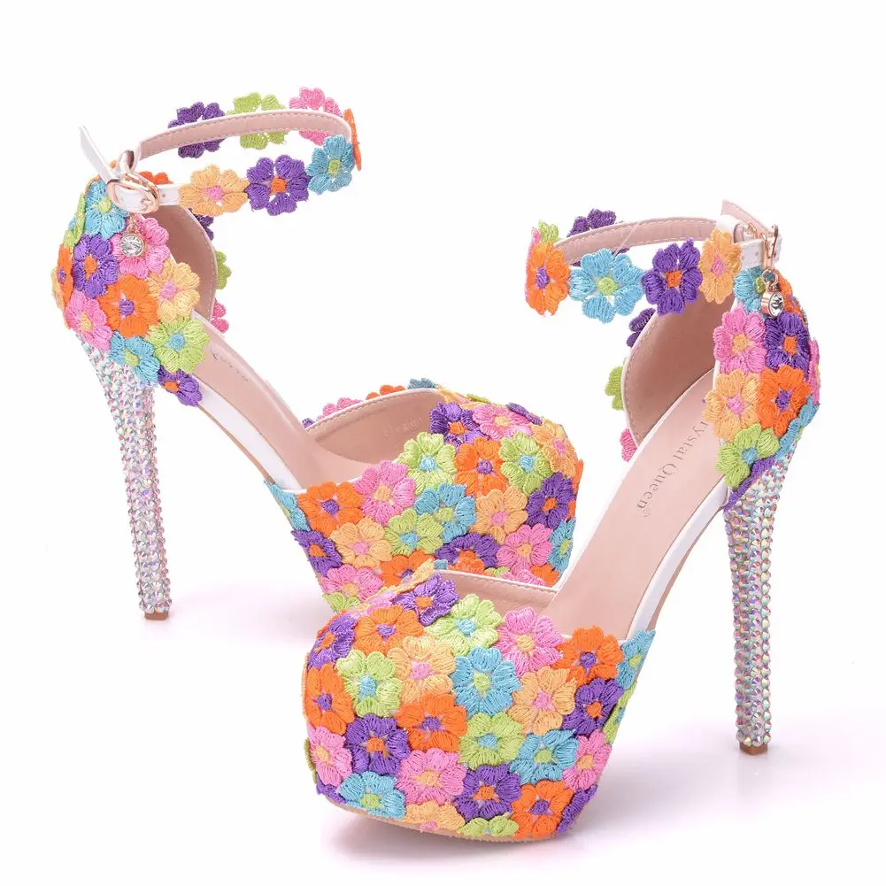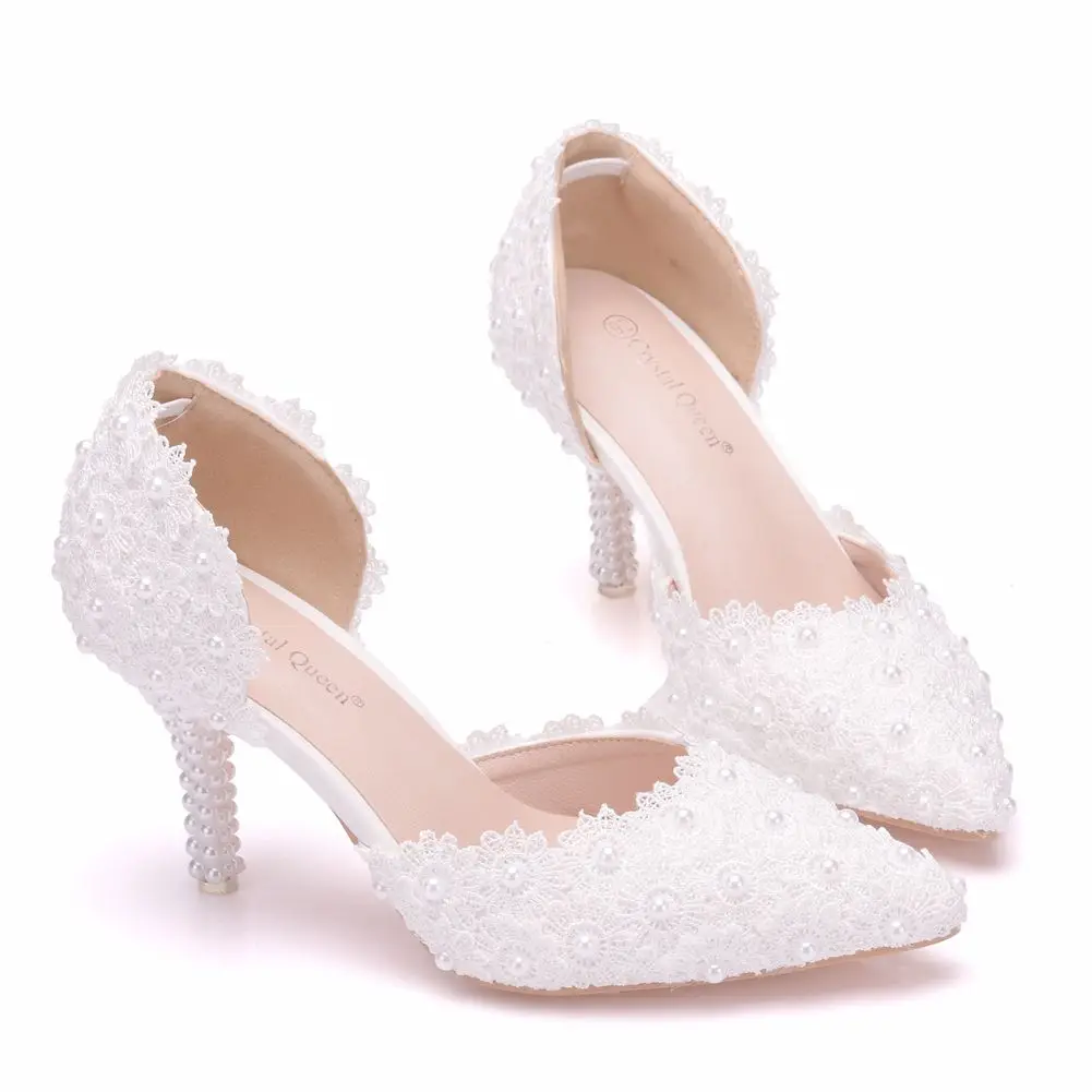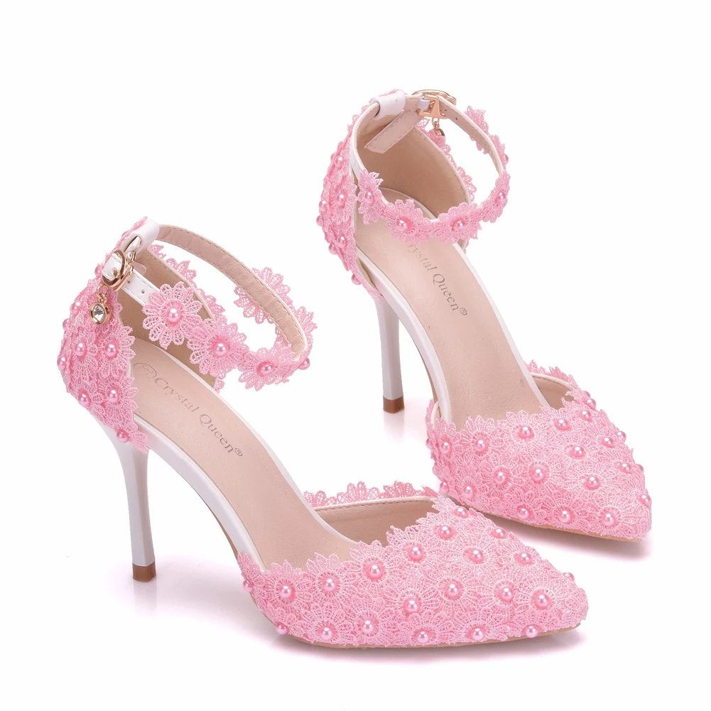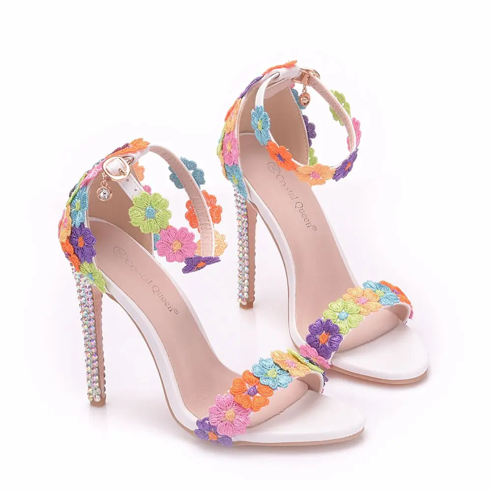Босоножки женские на высоком каблуке, свадебные туфли с кружевными цветами, с ремешком на запястье, тонкие сандалии для подружки невесты, белые