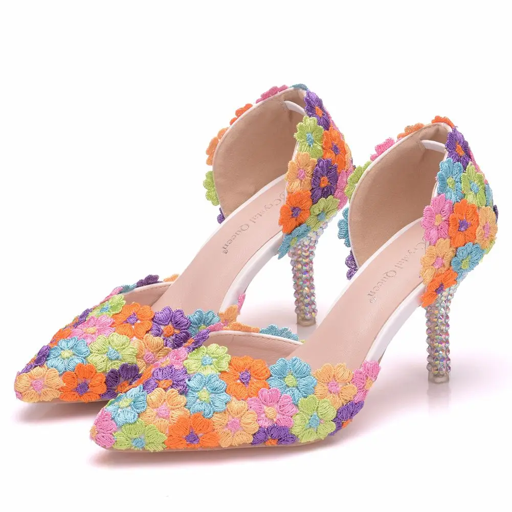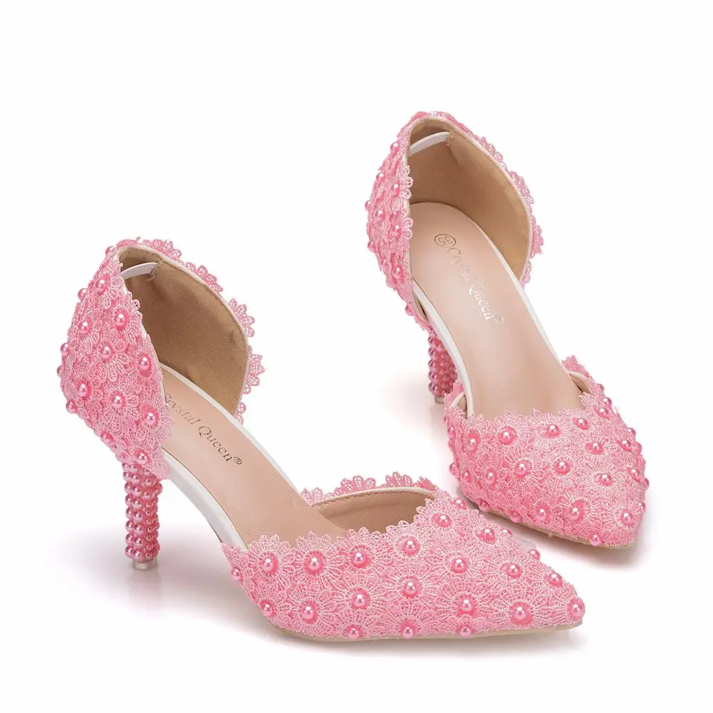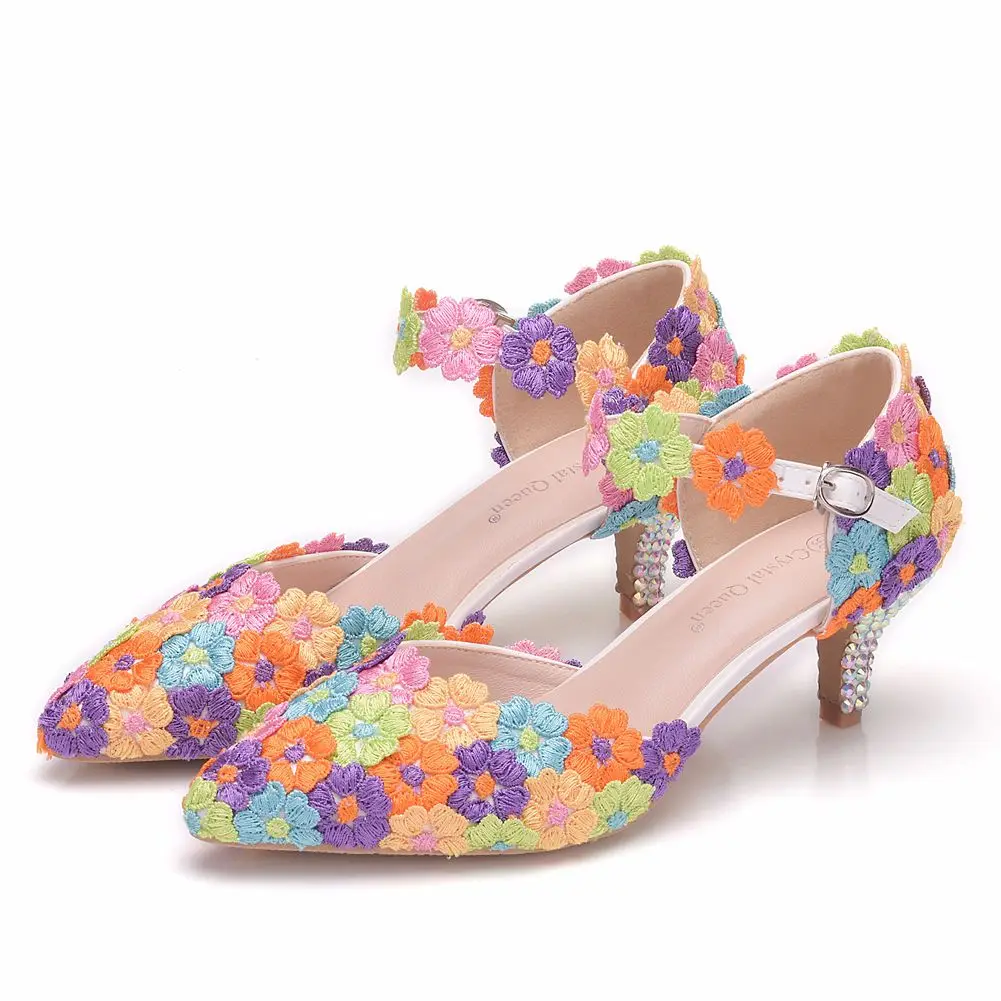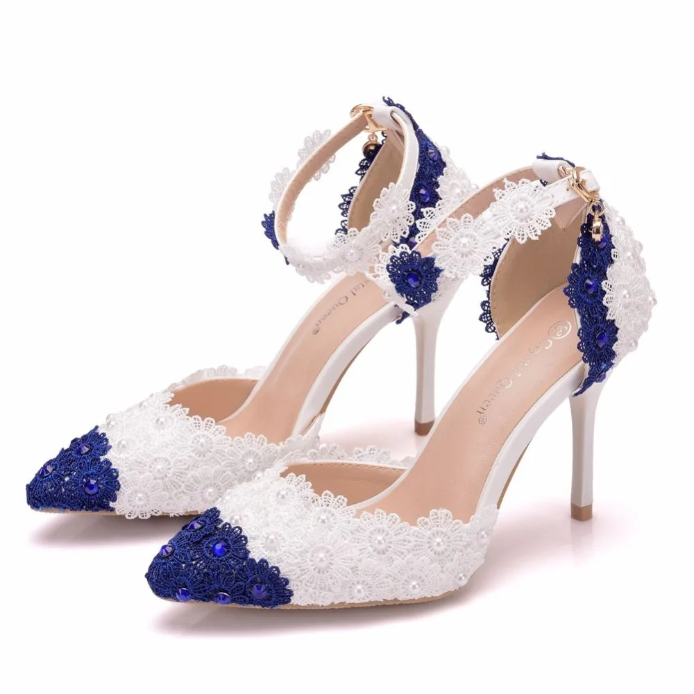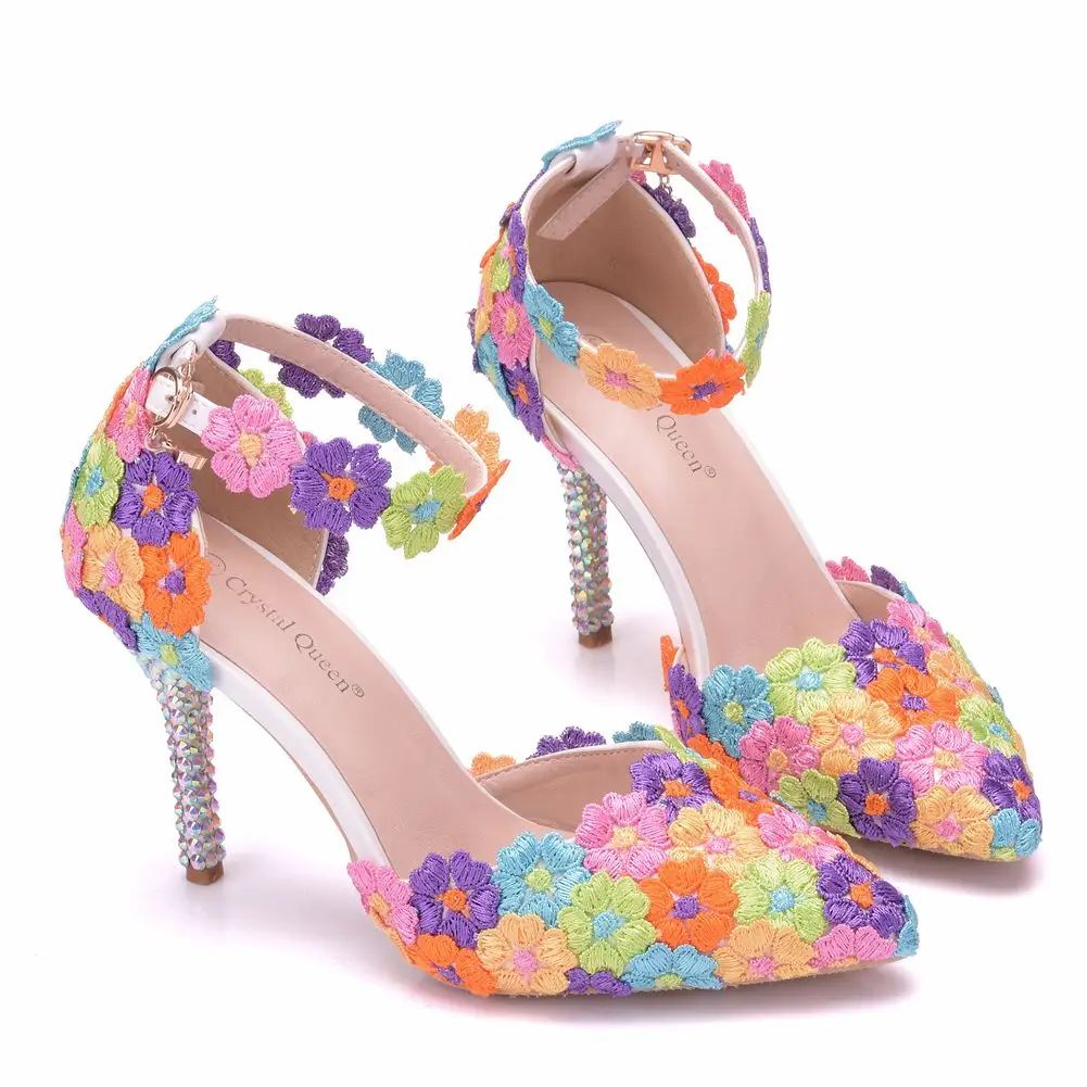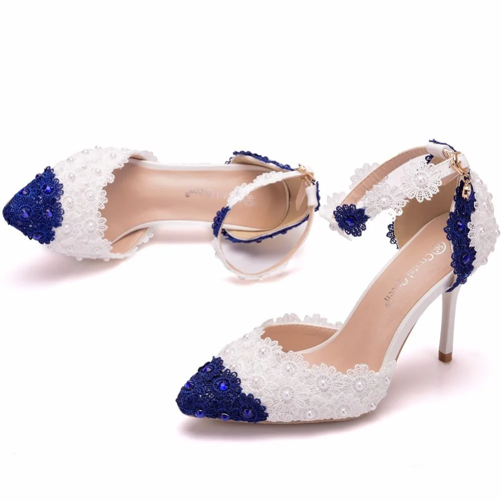 Босоножки женские на высоком каблуке, свадебные туфли с кружевными цветами, с ремешком на запястье, тонкие сандалии для подружки невесты, белые