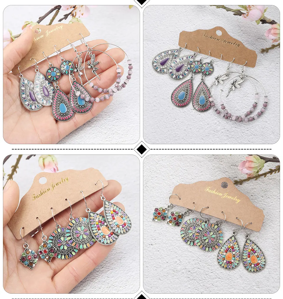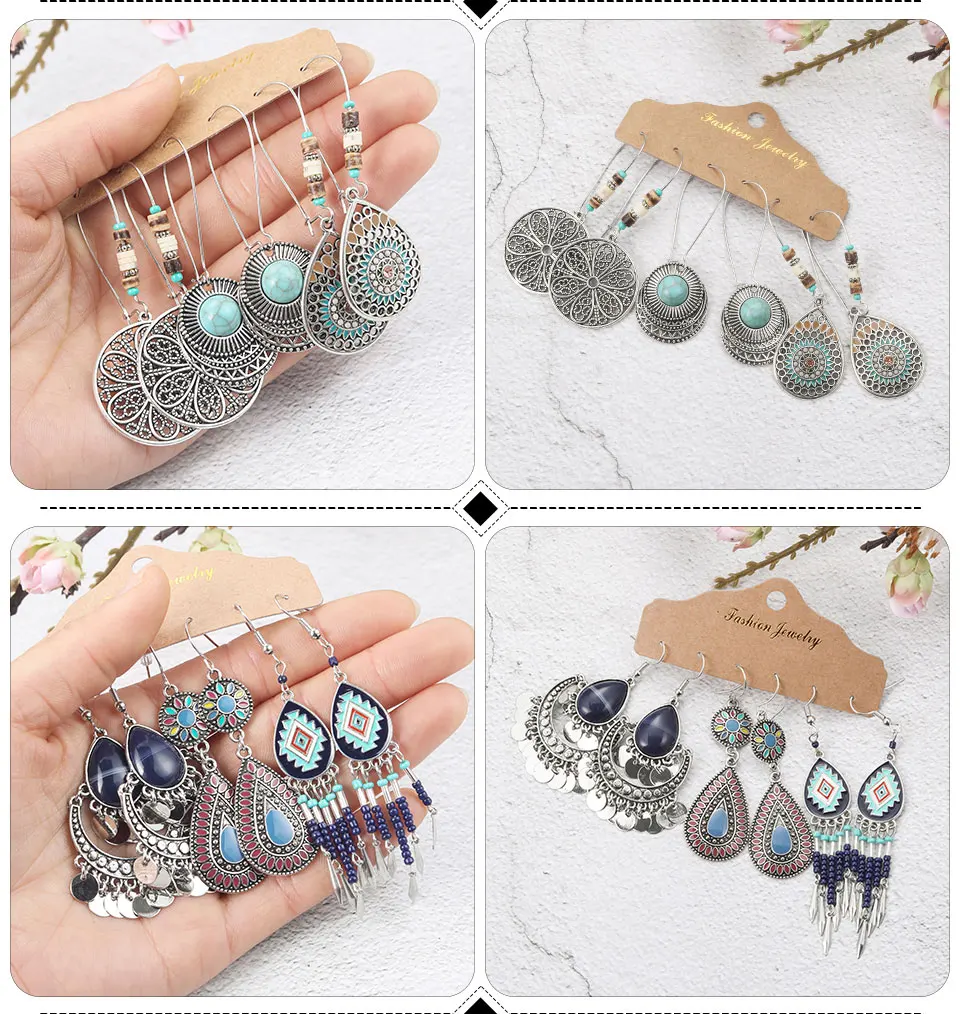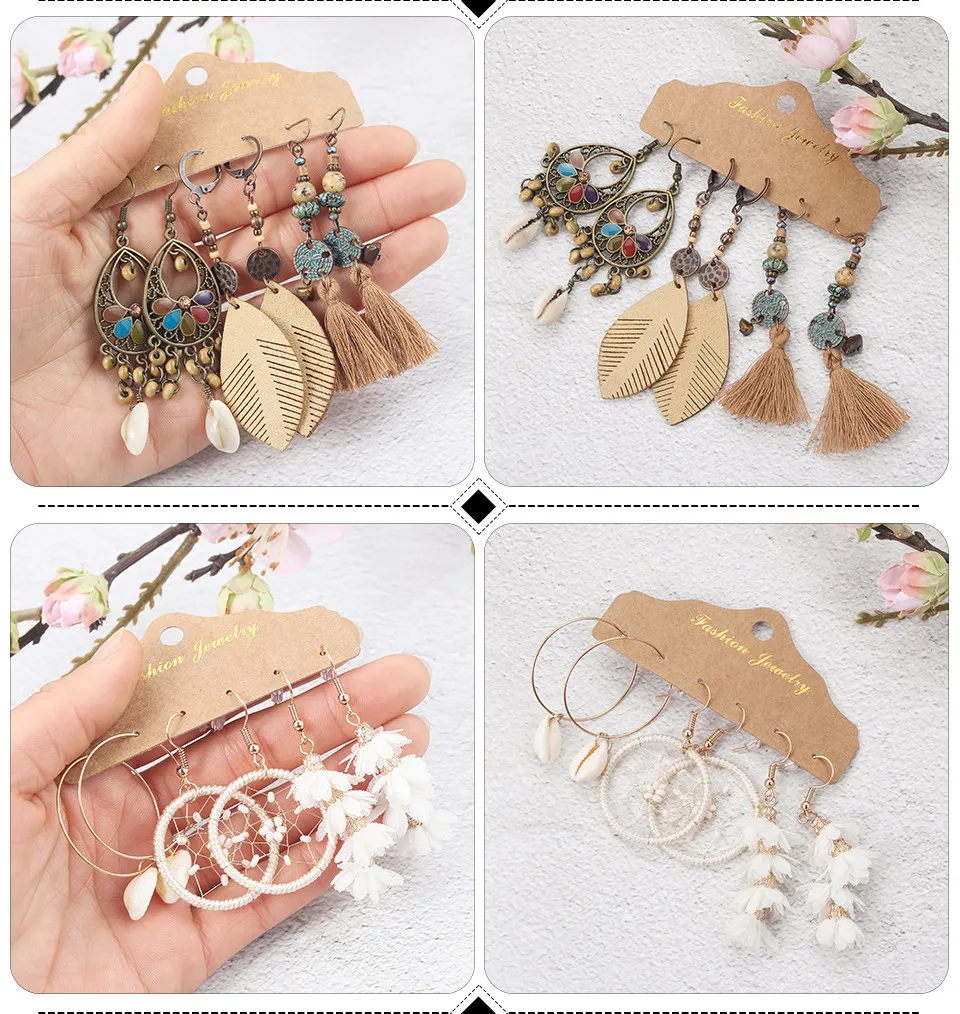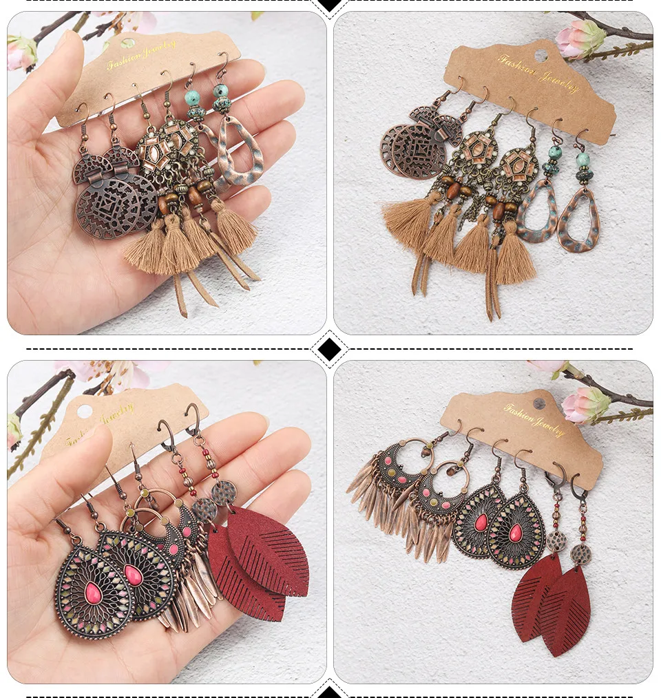 Набор женских винтажных сережек с подвесками, в этническом стиле бохо, с кисточками и кристаллами, 2020