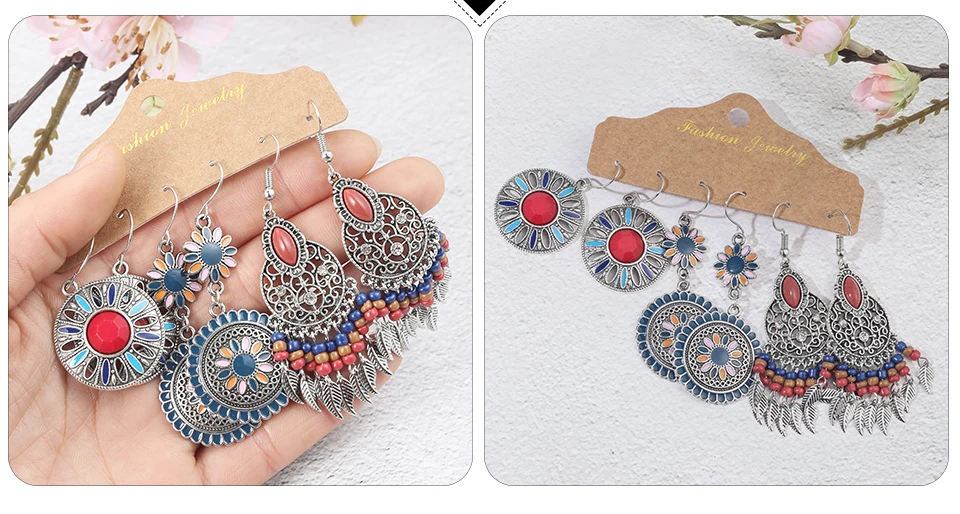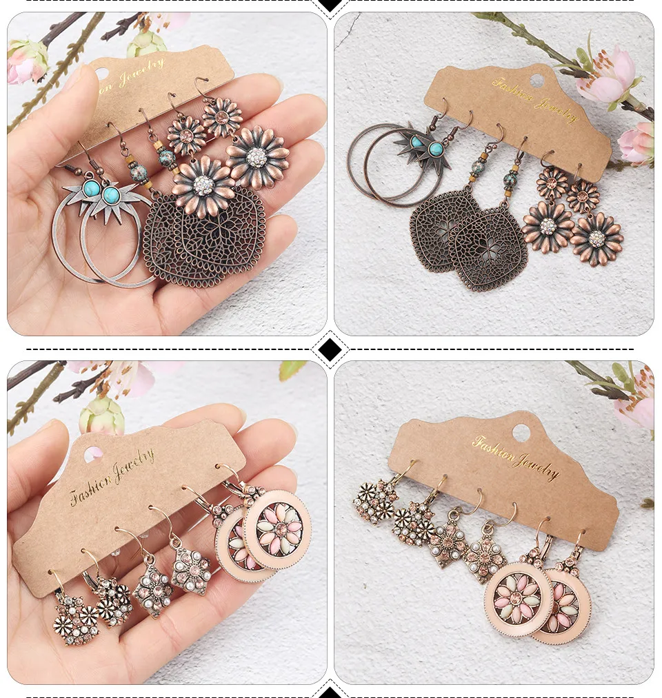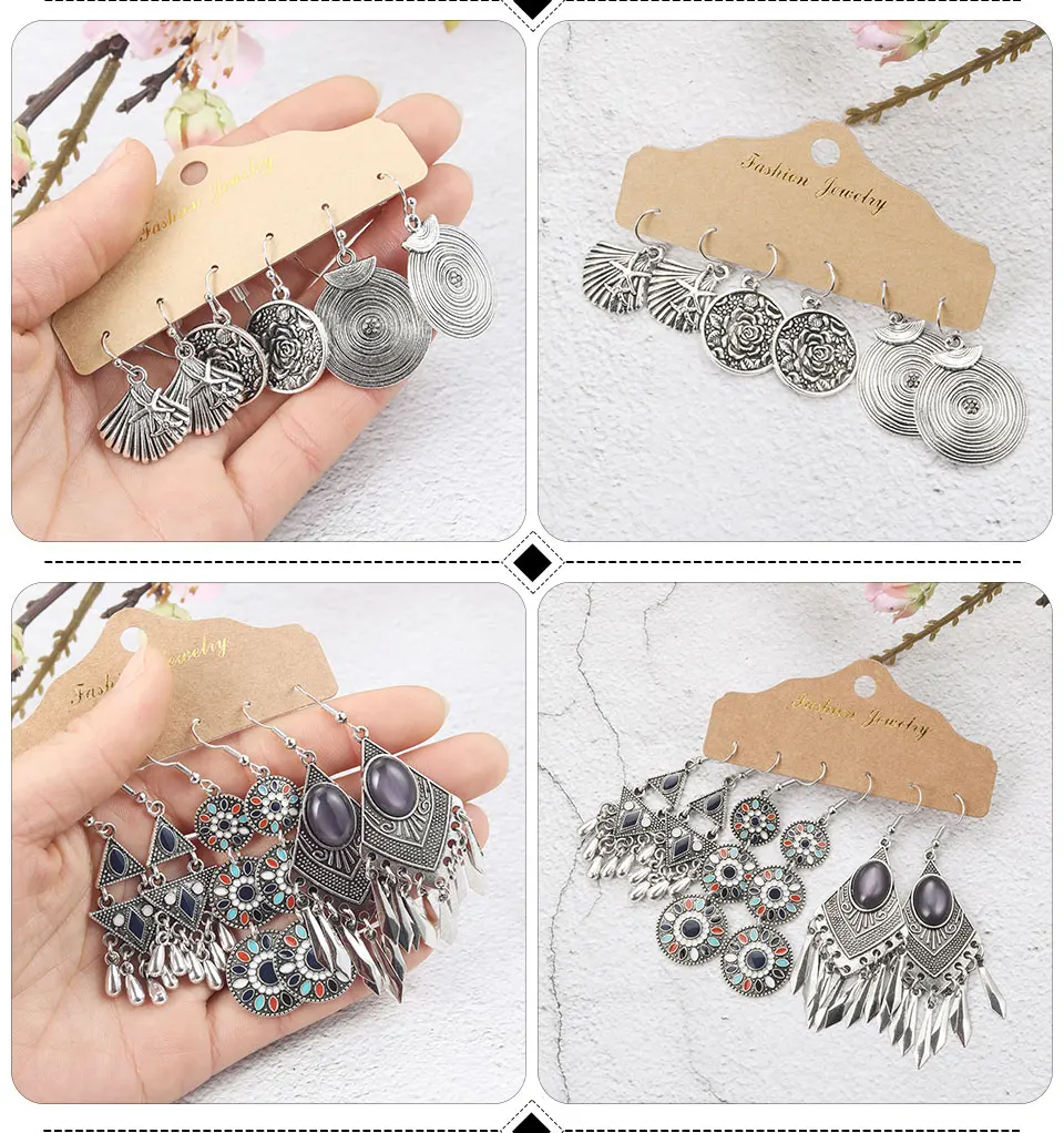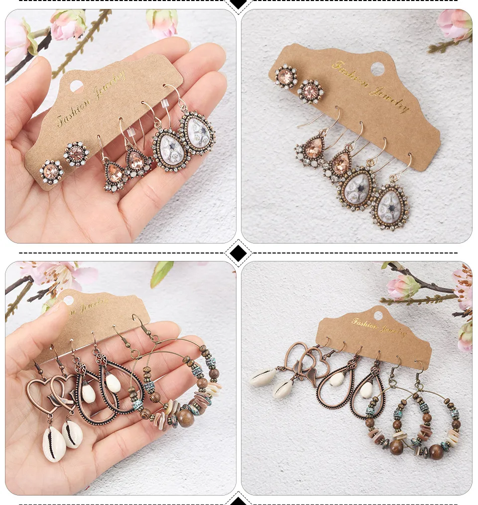 Набор женских винтажных сережек с подвесками, в этническом стиле бохо, с кисточками и кристаллами, 2020