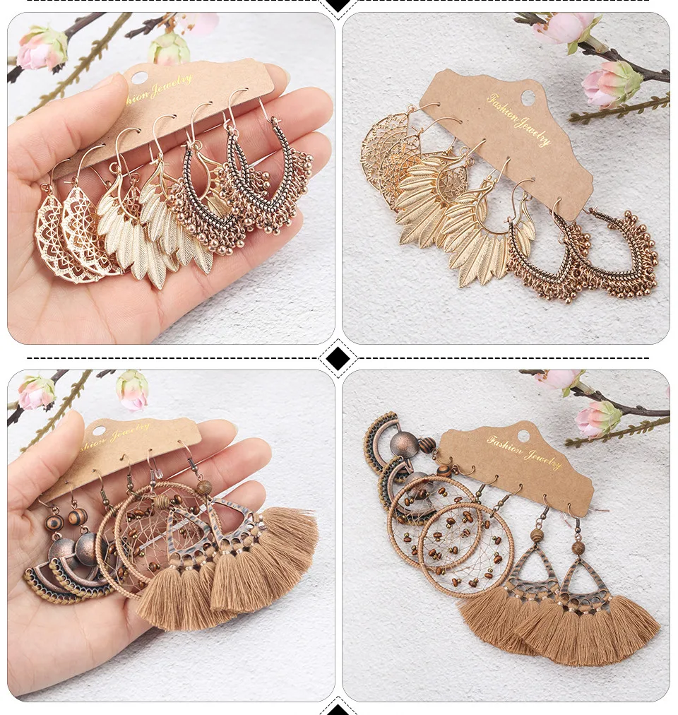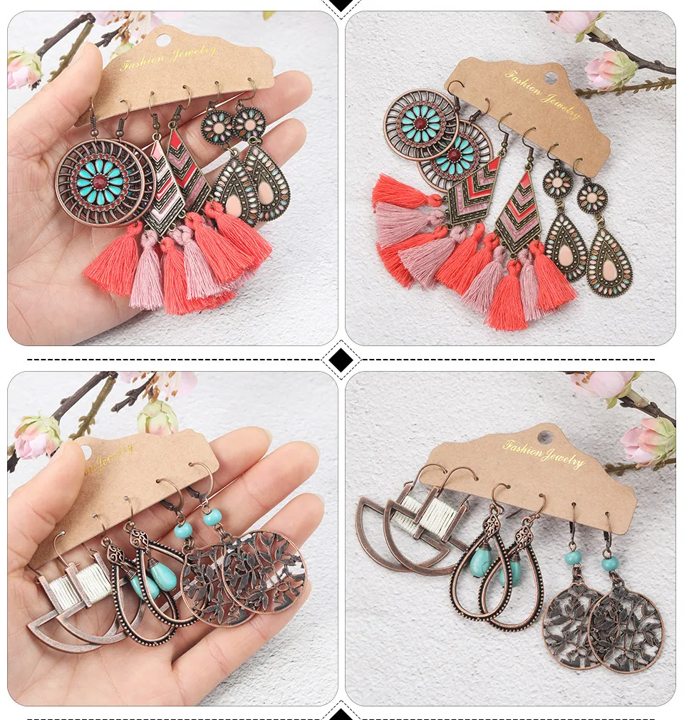 Тренд 2020, Винтажные висячие серьги, пучки для женщин, различные этнические серьги в стиле бохо с кисточками и кристаллами, комплекты ювелирных изделий, аксессуарыМатериал: медный сплав, кисточка, хрустальПовод: подарки для девушки/годовщины/помолвки/вечерние/свадьбыПримечание: Из-за разницы в освещении и экранах цвет изделия может немного отличаться от изображения.