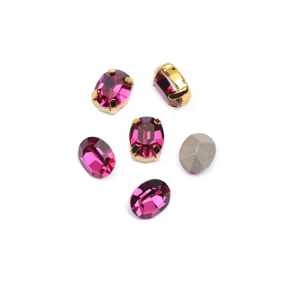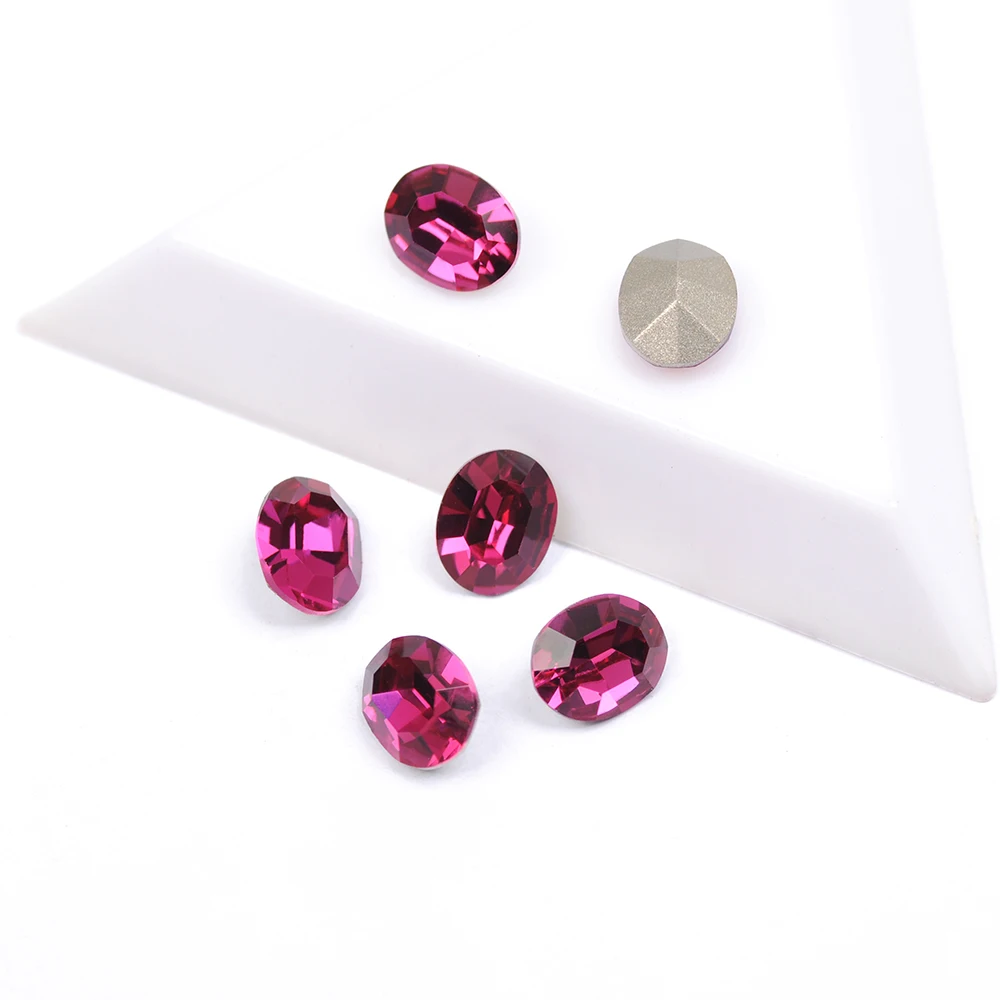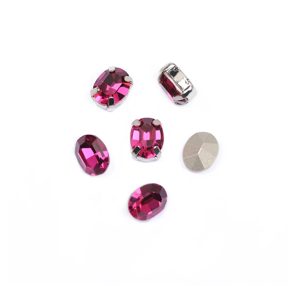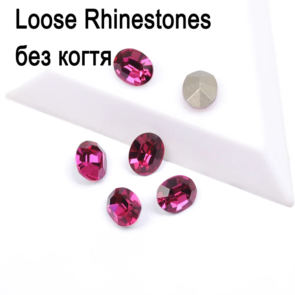 CTPA3bI Блестящий фуксия Овальный хрусталь, пришивные стразы, свободный стеклянный Острый камень для изготовления ювелирных изделий