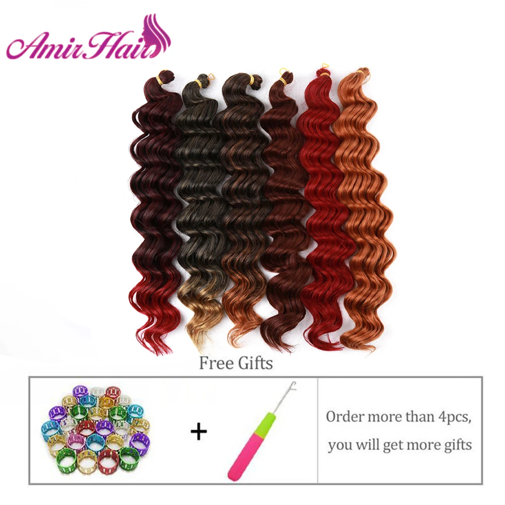 Косы для наращивания волос Amir, синтетические, с эффектом омбре, глубокая волна, вязаные крючком, пупряди волос афро, Freetress, темный блонд, 80 гупак.