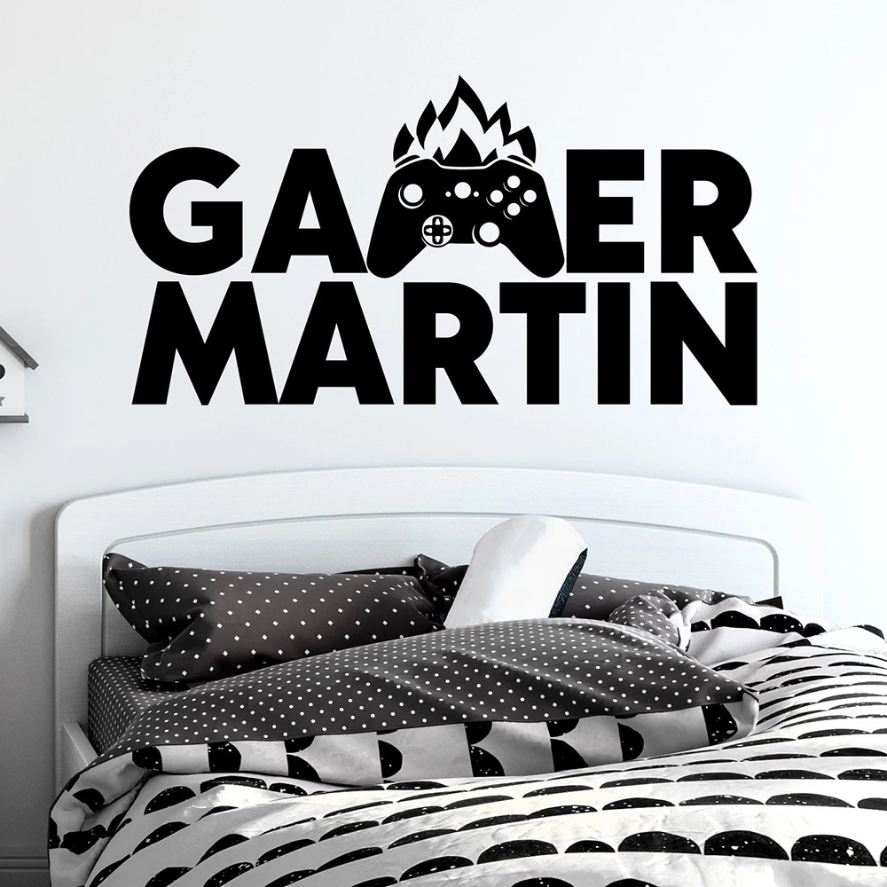 Геймер Имя Наклейка на стену игровой контроллер индивидуальный зака...