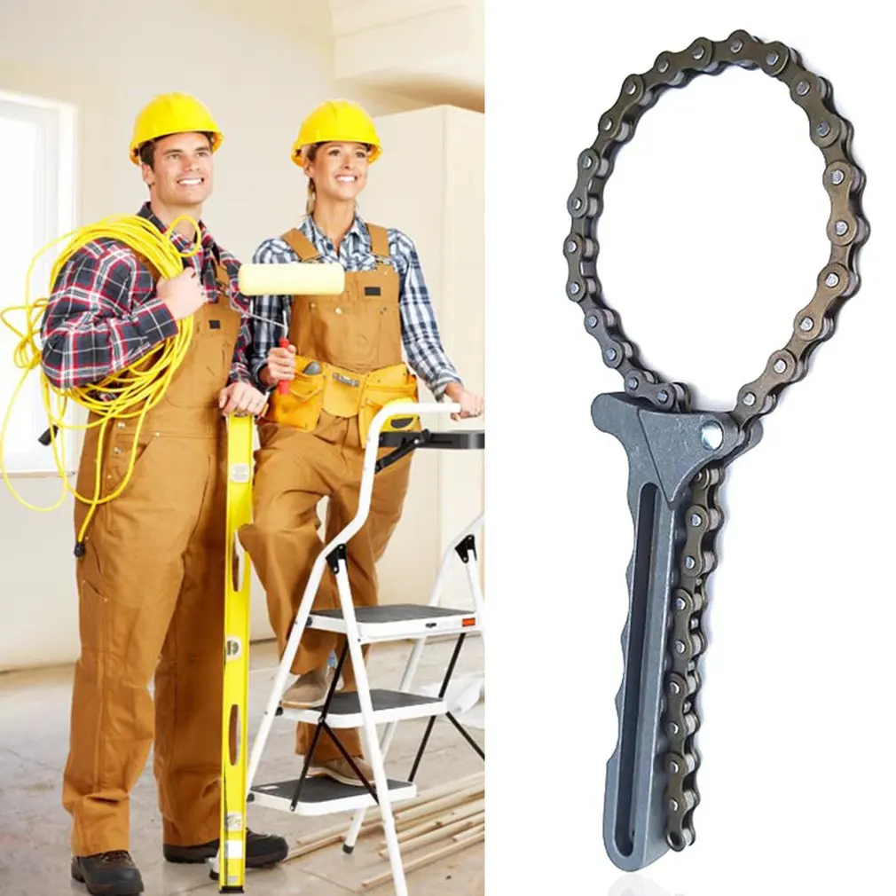 Регулируемый масляный фильтр для двигателя автомобиля алюминий + стальная цепь, инструменты для снятия ключей, инструменты для ремонта автомобилей, 1 шт.
