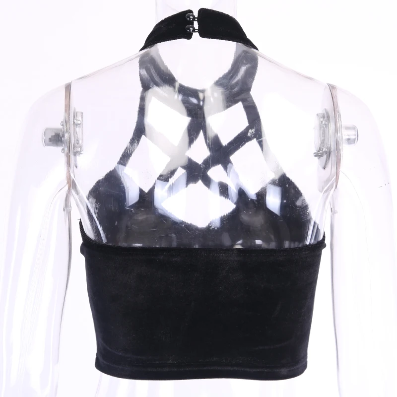 Женский топ на бретелях InsDoit, черный облегающий топ в готическом стиле, уличная одежда с пентаграммой, укороченный топ с открытой спиной в стиле Харадзюку