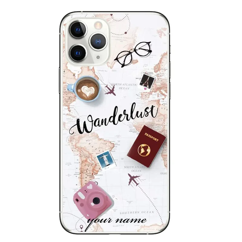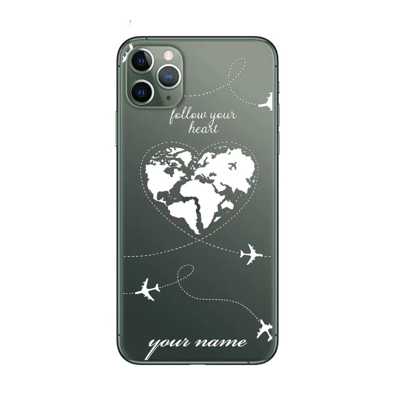 Персонализированный Чехол с именем на заказ, текстом и картой мира, мягкий прозрачный чехол для телефона iPhone 11 12 13 Pro X XR XS MAX 6 7 8 6s SE Mini Plus