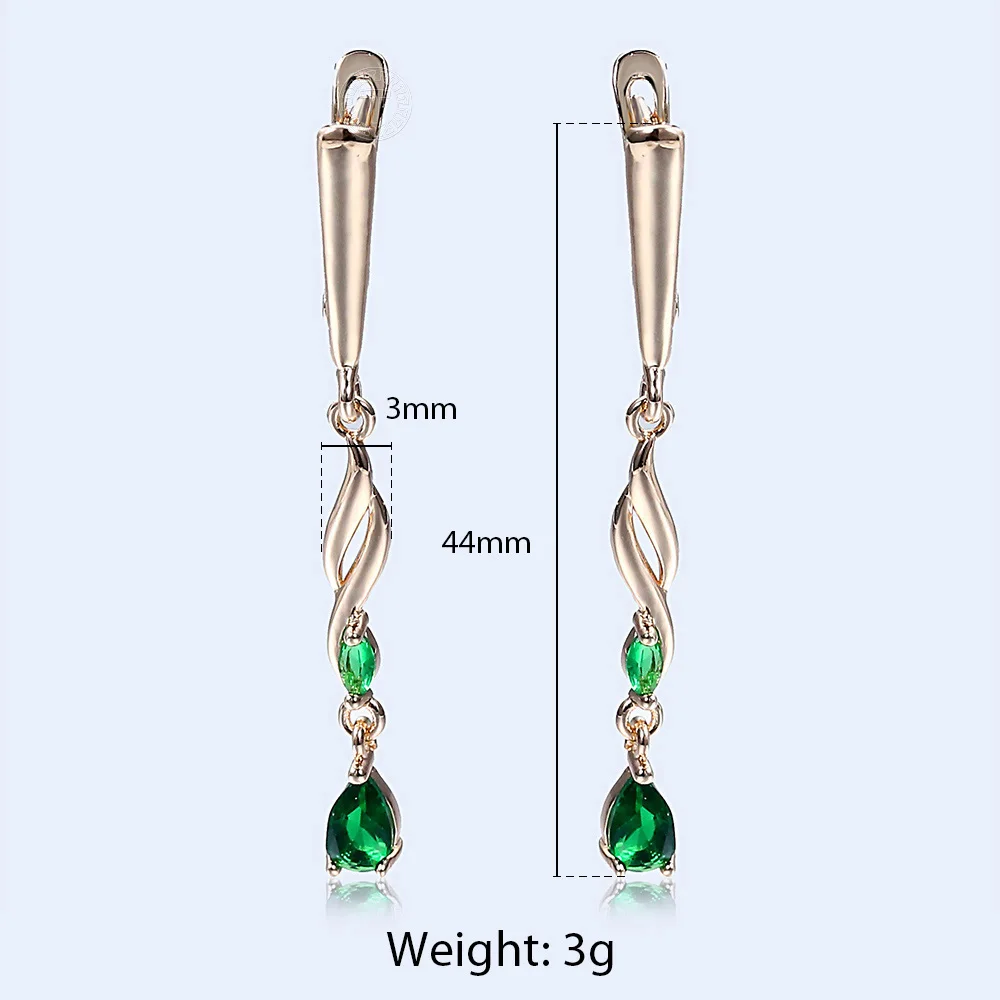 Женские длинные висячие серьги с Зелеными камнями, розовое золото 5...
