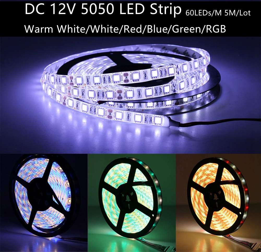 Лента Светодиодная гибкая, 5-20 м, 12 В постоянного тока, 5050, 283...