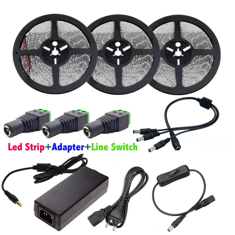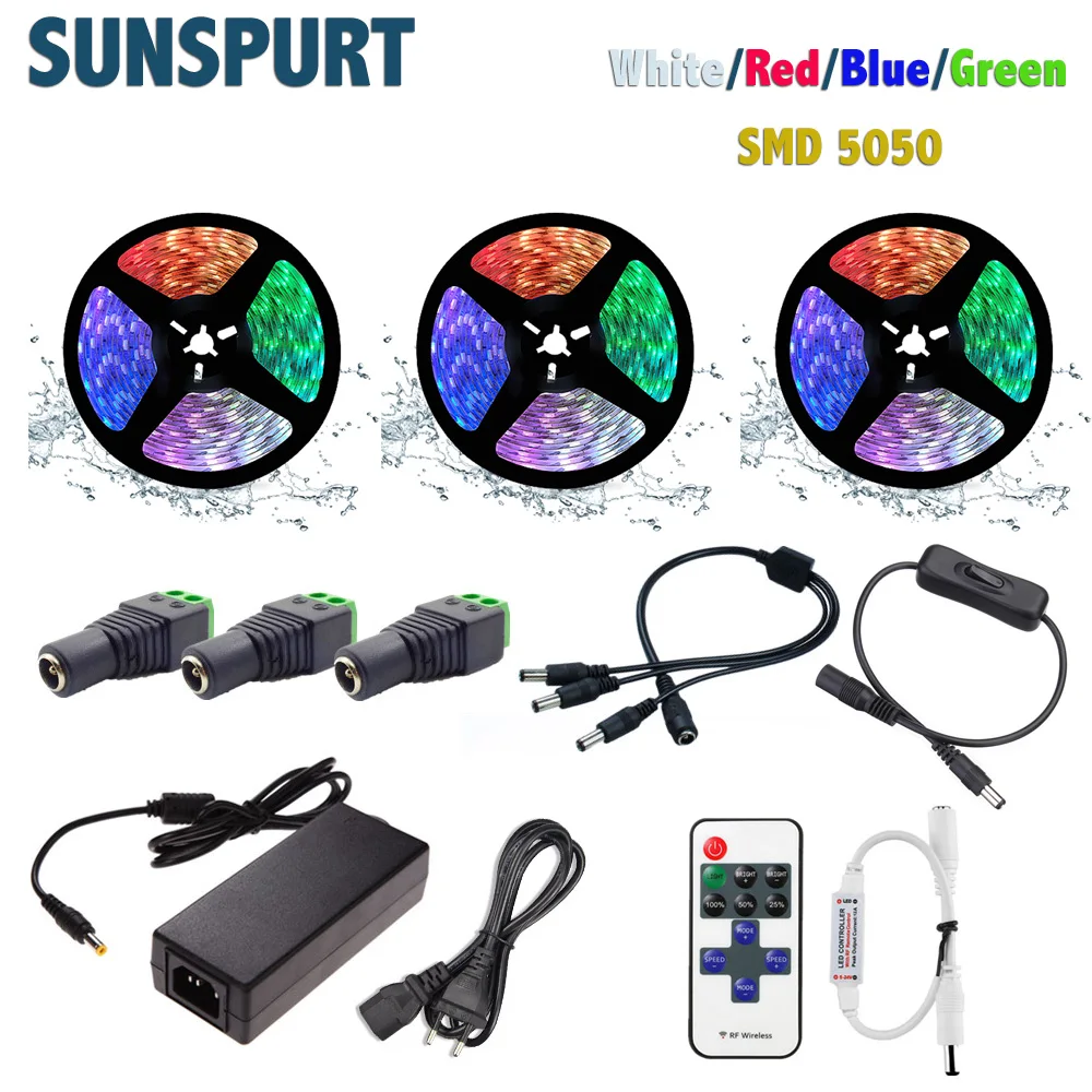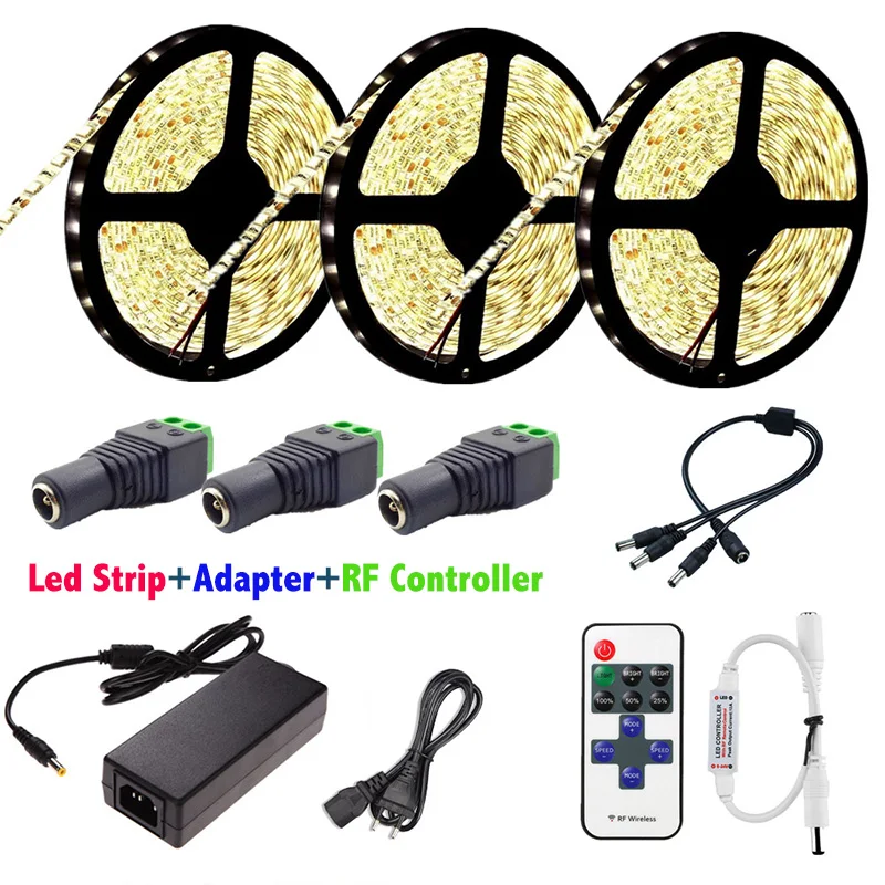 5-20 м DC12V 5050 2835SMD белый синий красный зеленый светодиодный светильник полный комплект DC12V + RF пульт дистанционного управления + адаптер гибкий ленточный светильник 60 светодиодов/м Светодиодная лента домашний Декор лампа украшение автомобиля