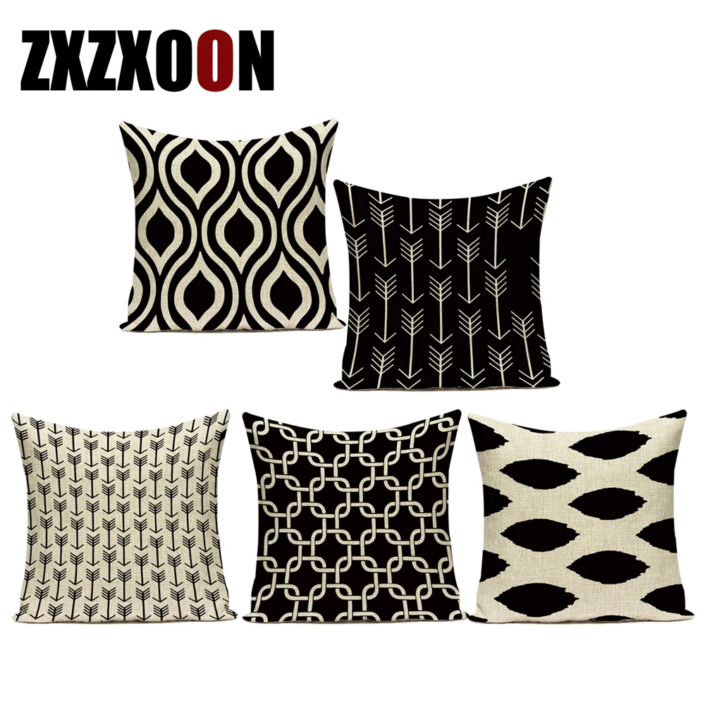 Черный, белый цвет Декоративные диванные подушки Чехол с геометриче...