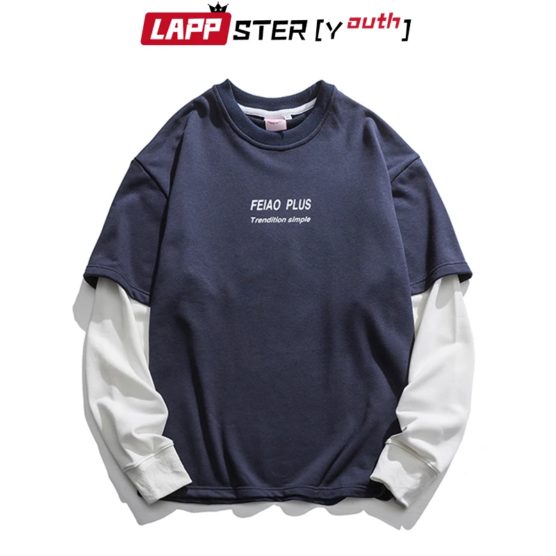 Корейские мужские толстовки LAPPSTER с имитацией двух частей с прин...