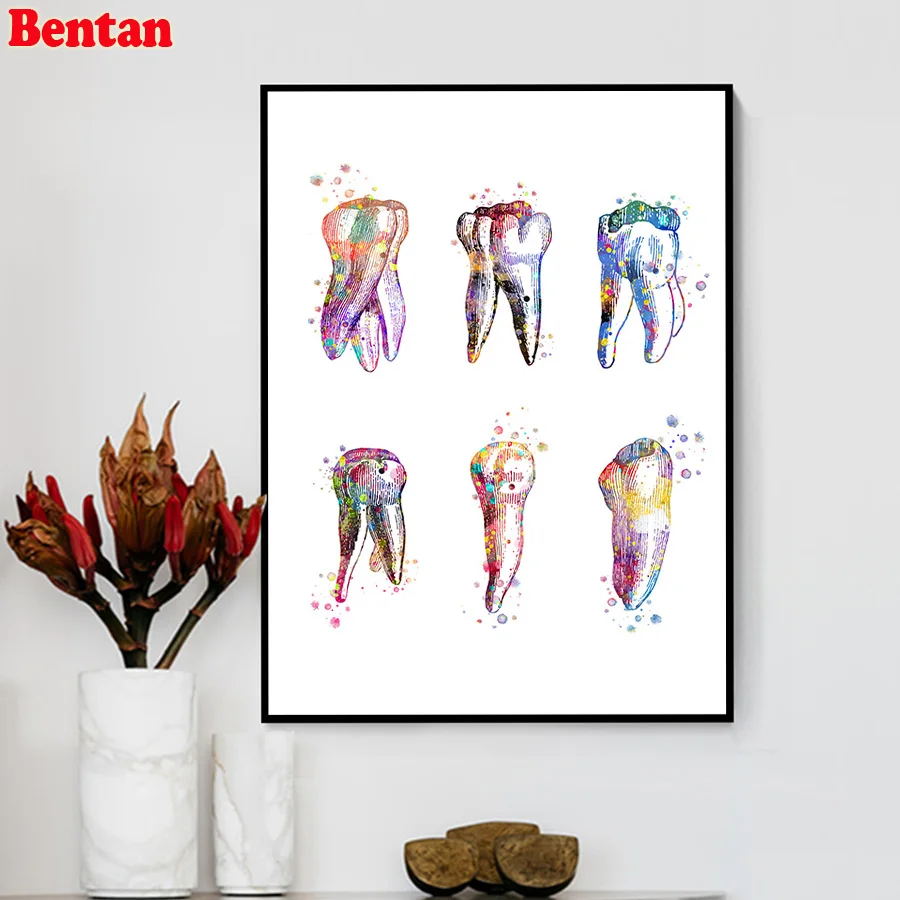5d алмазная картина своими руками, вышивка крестиком, зубы, искусство, стоматолог, картина на стену, подарок для кабинета, алмазная вышивка, мозаичное украшение из страз