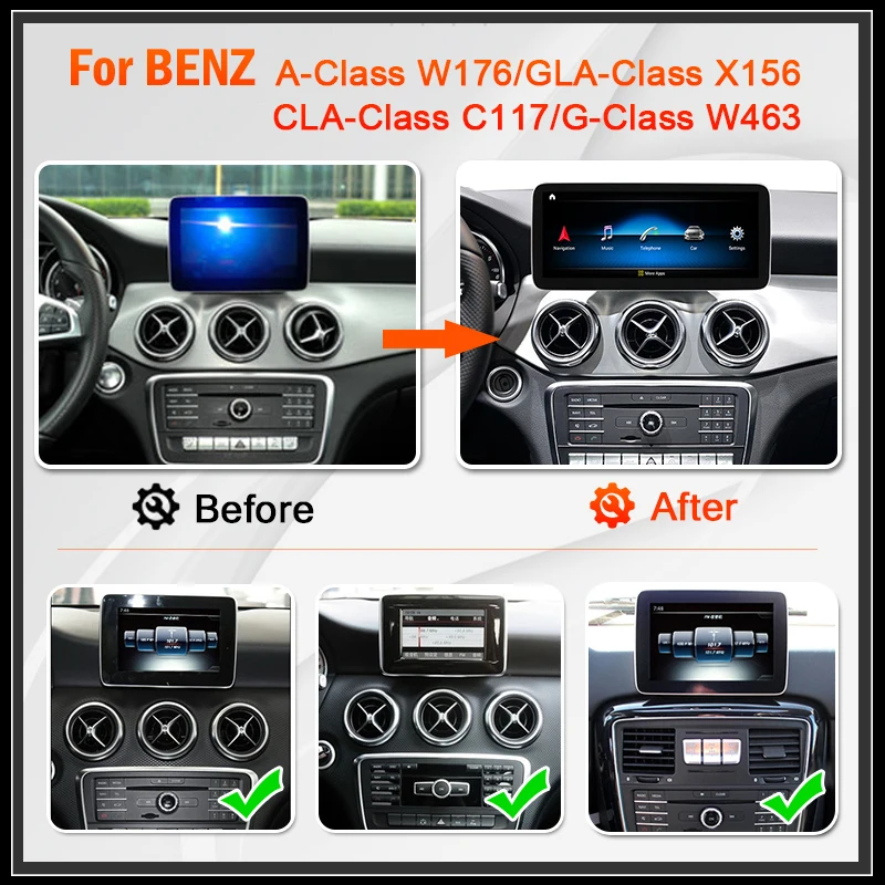 1. Android 10.0 RAM(4G / 2G/1G) ROM(64G / 32G/16G) Восьмиядерный IPS HD емкостной сенсорный экран.2. Подарок = карта + дополнительный микрофон (Файл карты будет установлен на радио, карта не включена)3. BT4.14. Поддержка воспроизведения видео 4K Ultra HD, H.264 (AVC), H.265 (HEVC)5. 1 + 16G четырехъядерный 1024*6002 + 32G четырехъядерный 1280*4804 + 64G Восьмиядерный 1280*4804 + 64G Восьмиядерный 1920*720P6. Четырехъядерный процессор: MSM 8917 SNAPDRAGON 425Восьмиядерный процессор: MSM 8953 SNAPDRAGON 6257. Синий экран с антибликовым покрытием.8. Это радио поддерживает функцию carplay (опционально)9. Этот продукт совместим с сохранением всех особенностей оригинального автомобильного радио (CD).ФитнесДля Mercedes-Benz A-Class (W176) 2013-2018 с NTG 4,5/4,7/5,0/5,1Для Mercedes-Benz B-Class (W246) 2011-2018 с NTG 4,5/4,7/5,0/5,1Для Mercedes-Benz C-Class (W204 / W205) 2007-2019 с NTG 4,0/4,5/4,7/5,0/5,1Для Mercedes-Benz CLA-Class (C117 / X117) 2013-2018 с NTG 4,5/4,7/5,0/5,1Для Mercedes-Benz CLS-Class (W218) 2015-2018 с NTG 5,0/5,1Для Mercedes-Benz E-Class (W212) (LHD & RHD) 2009-2016 NTG 4,0/4,5/4,7/5,0/5,1Для Mercedes-Benz E-Class (C207 / A207) (только LHD) 2009-2016 NTG 4,0/4,5/4,7/5,0/5,1Для Mercedes-Benz G-Class (W460) 2012-2018 с NTG 4,5/4,7/5,0/5,1Для Mercedes-Benz GLA-Class (X156) 2013-2018 с NTG 4,5/4,7/5,0/5,1Для Mercedes-Benz GLC-Class (C253 / X253) 2015-2019 с NTG 5,0/5,1Для Mercedes-Benz GLK-Class (X204) 2008-2015 с NTG 4,0/4,5/4,7Для Mercedes-Benz V-Class (W447) 2014-2019 с NTG 5,0/5,1Для Mercedes-Benz X-Class 2017-2019 с NTG 5,0/5,1Примечание:1. Указанный выше год указан только для справки. Свяжитесь с нами, если вы не уверены в фитнесе.2. Этот продукт является MSM8917 Snapdragon 425 4-х ядерный 2G + 32G 1280*4803. М/ML/SL/SLC/SLK 9 дюймов экран. Другой автомобиль-экран 10,25 дюйма.4. При покупке продукта, пожалуйста, оставьте нам сообщение с вашим NBT системным интерфейсом. Спасибо!
