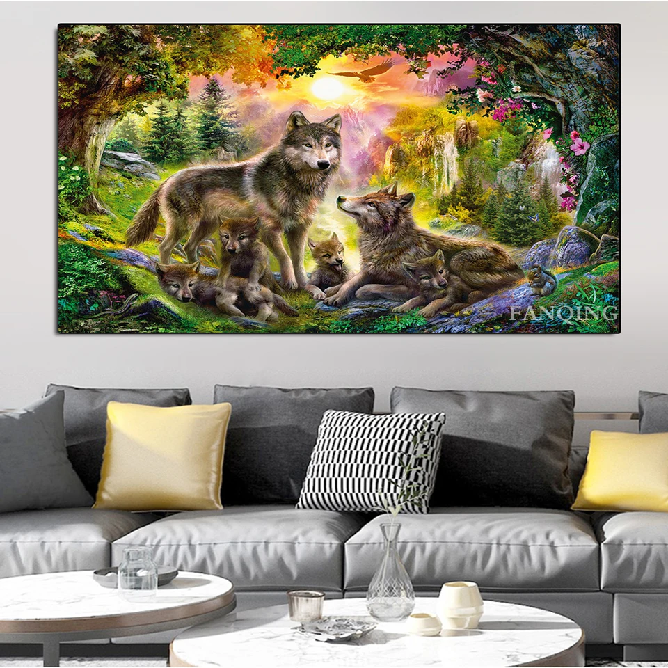 Картина 5D "сделай сам", квадратная, круглая, алмазная вышивка, волк, семья, вышивка крестиком, стразы, подарок декор из алмазной мозаики