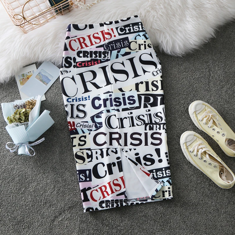 Женская юбка-карандаш с высокой талией, в стиле граффити