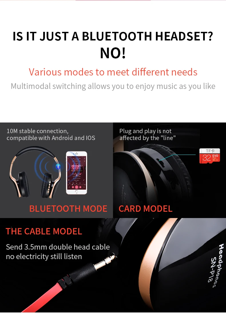 Function 5:Microphone Wireless Headphone Portable Bluetooth headset