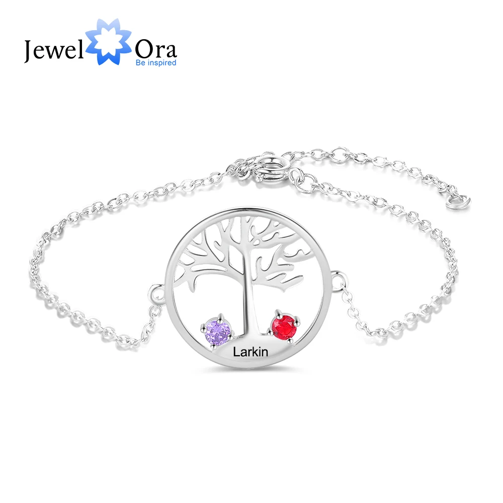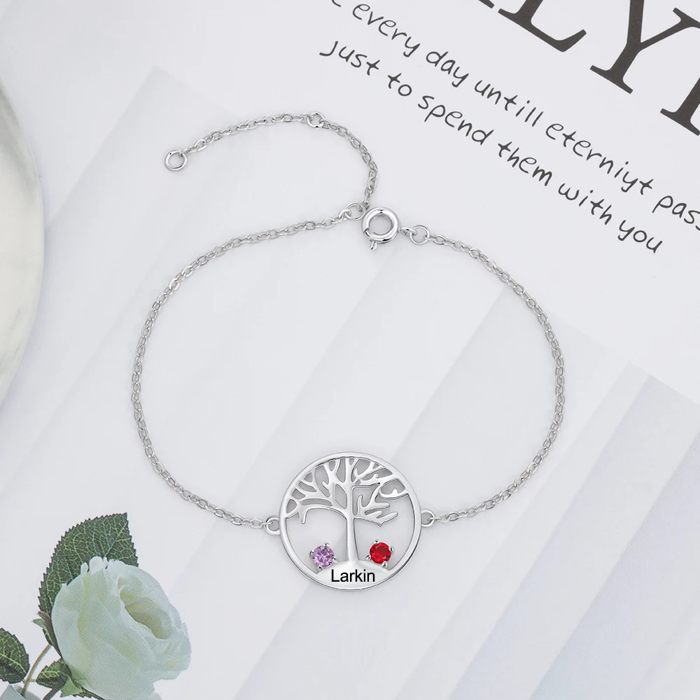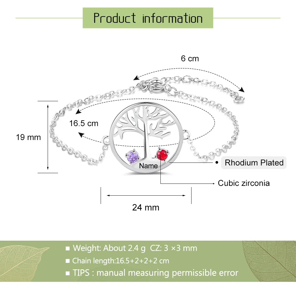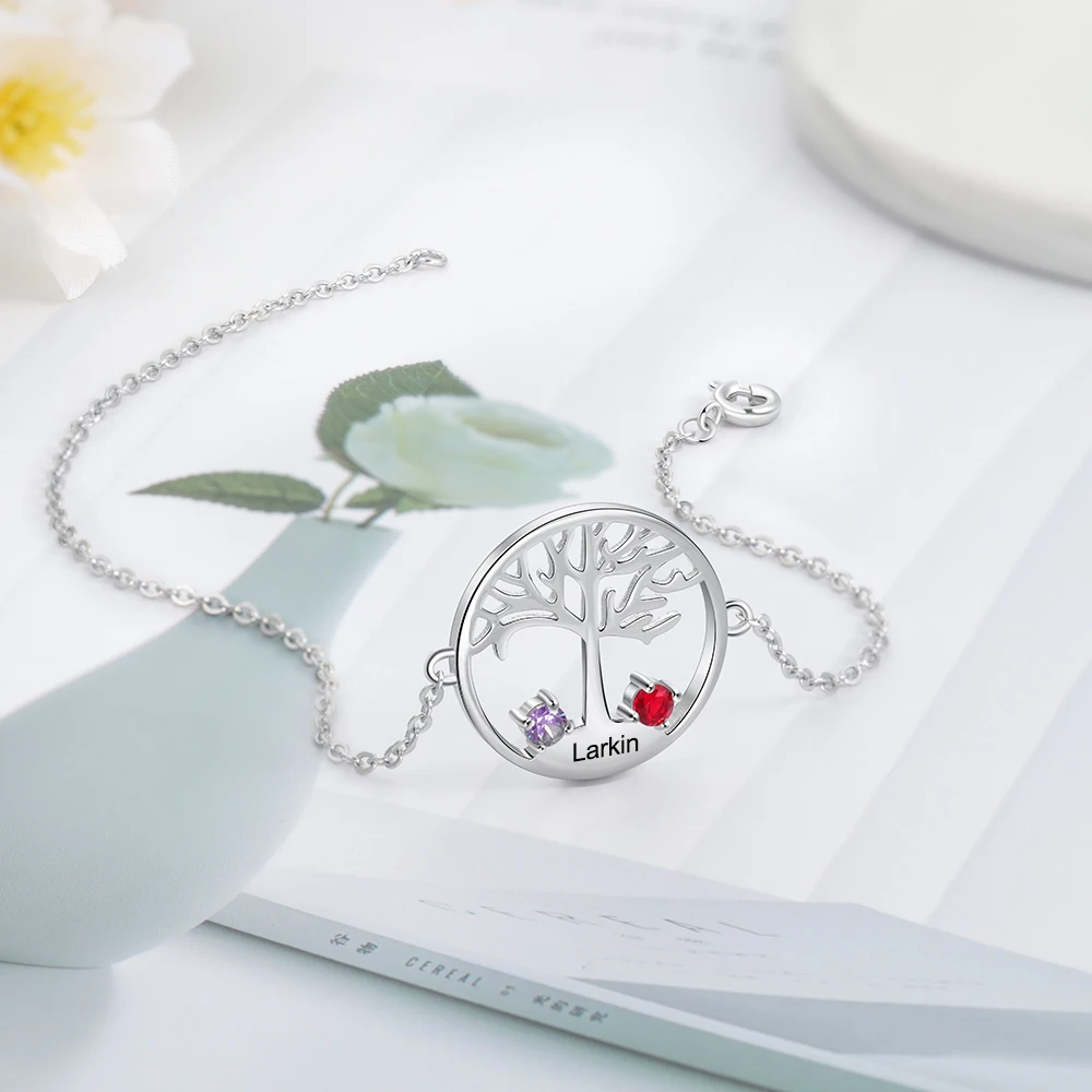 Браслет с гравировкой дерева жизни Женский, персонализированный браслет с 2 камнями по месяцу рождения, с именем на заказ, цепочка-браслет, аксессуары, подарочная бижутерия