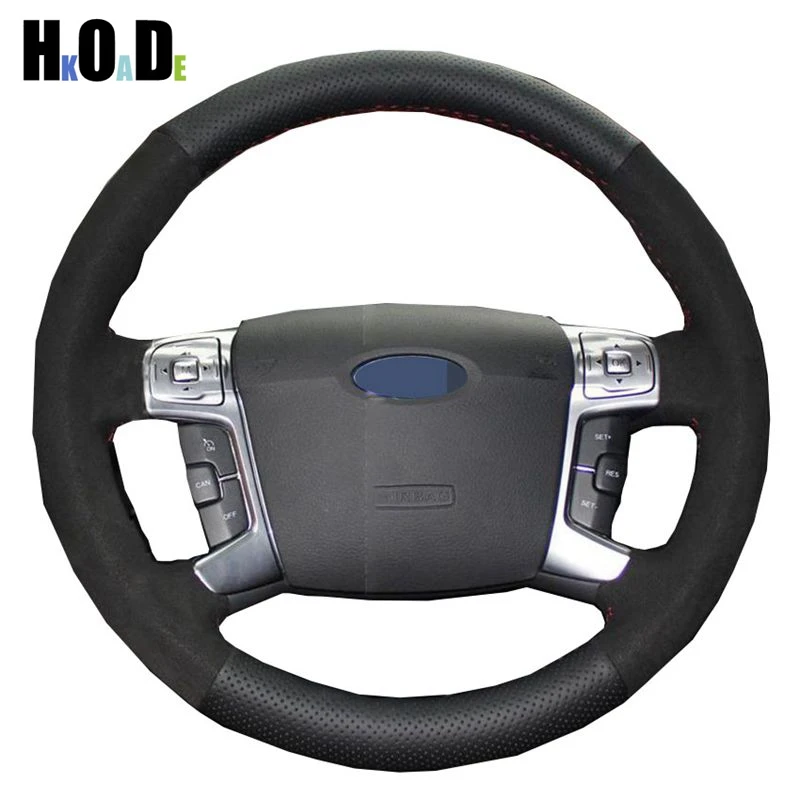 Чехол для руля, из натуральной кожи, прошитый вручную, черный чехол рулевого колеса автомобиля, для Ford S-Max 2008, Mondeo Mk4 2007-2012