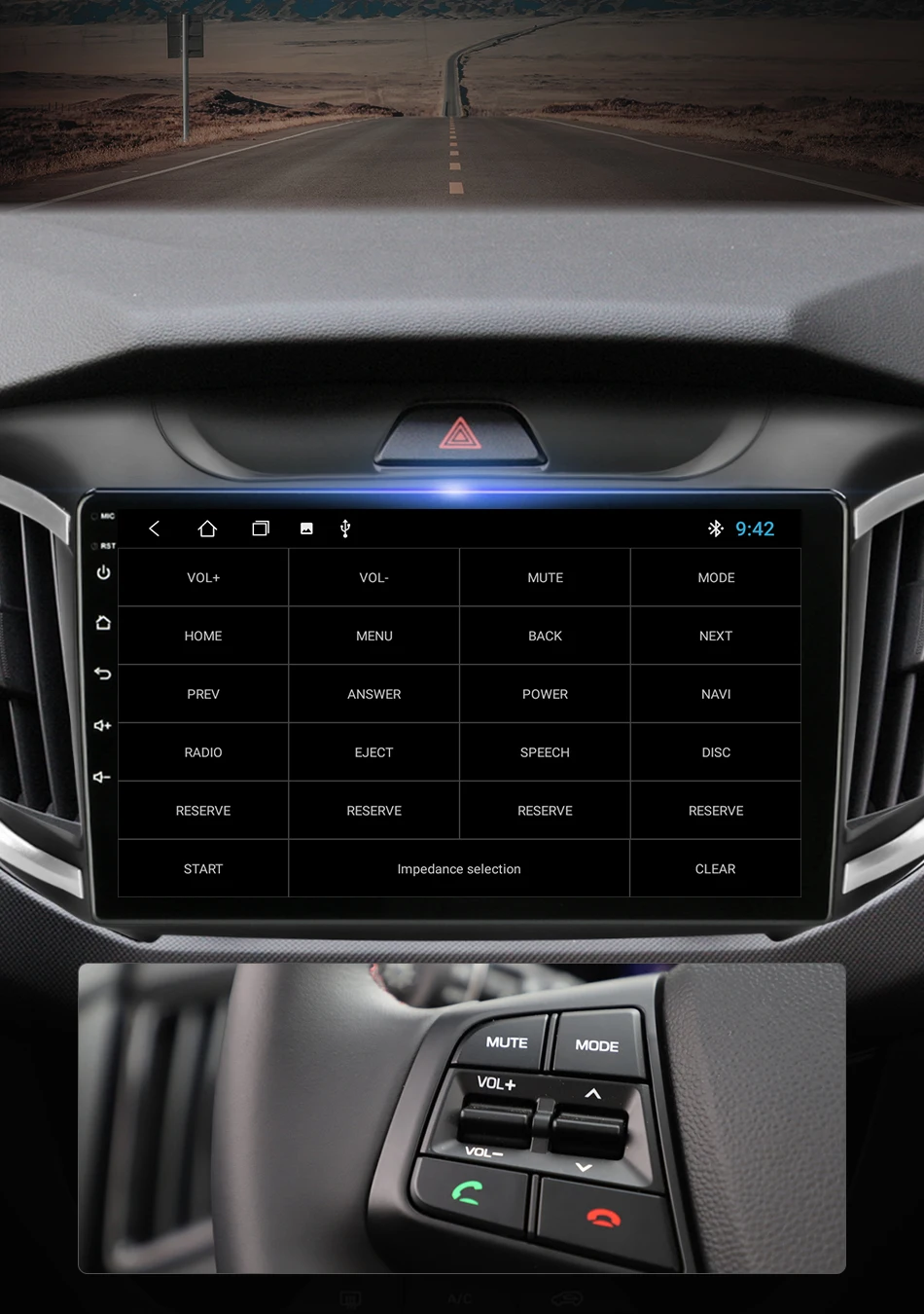 Поддержка управления рулем оригинального автомобиля. Для первого использования версии без canbus требуется ручное обучение клавишам. Версия с canbus может использоваться после проверки и подключения canbus.