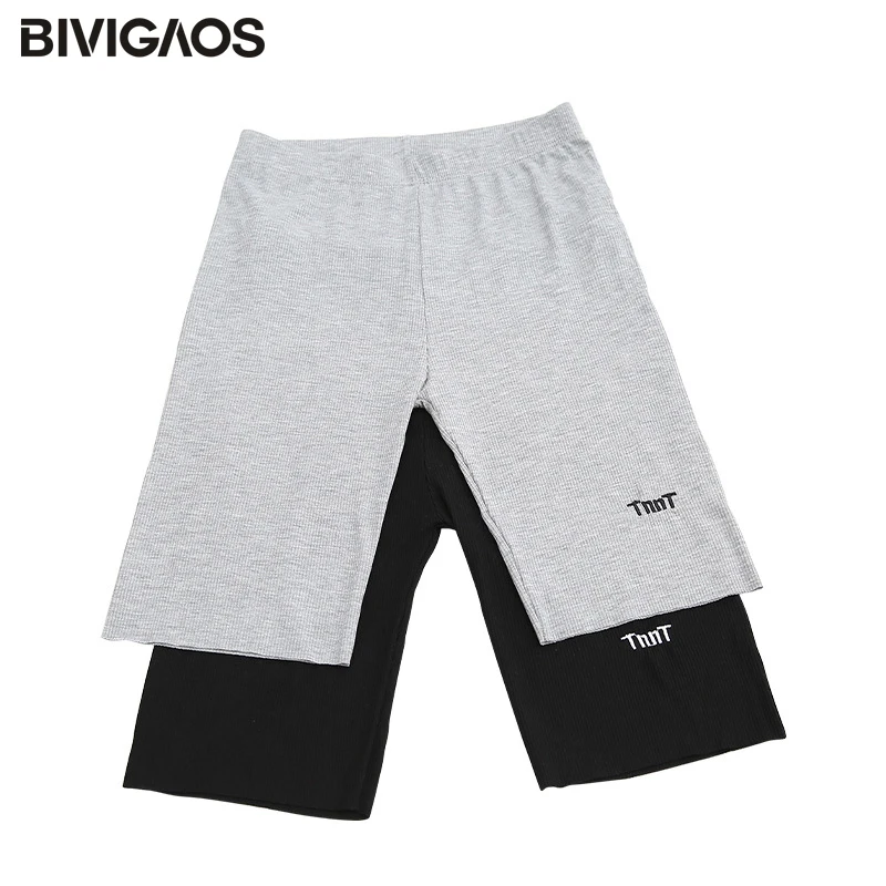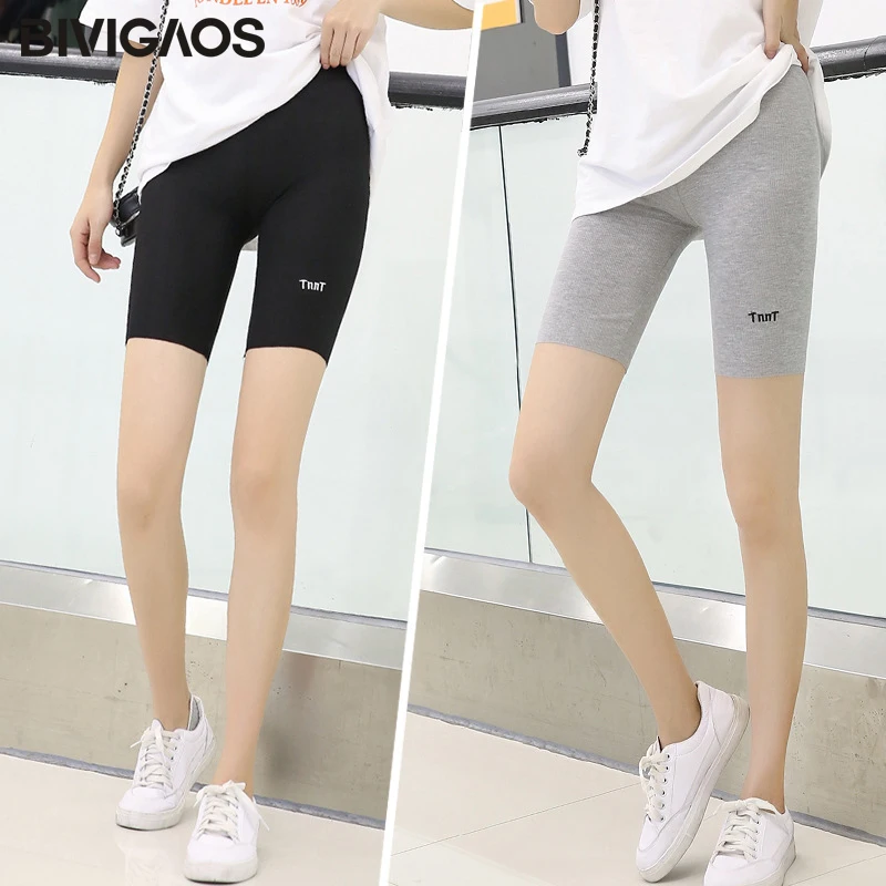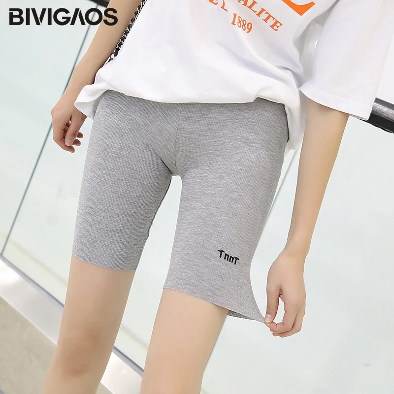 BIVIGAOS новинка шорты с вышитыми буквами женские летние тонкие хлопковые байкерские шорты большие размеры эластичные спортивные шорты спортивная одежда велосипедки женские модные шорты женские спортивные