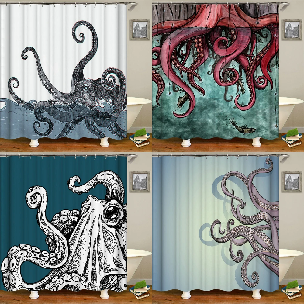 Занавеска для душа Octopus Seas s, занавеска для ванной 180*180 см, водонепроницаемая, для ванной комнаты, домашний декор, моющаяся ткань, экран для ванной комнаты с 12 крючками