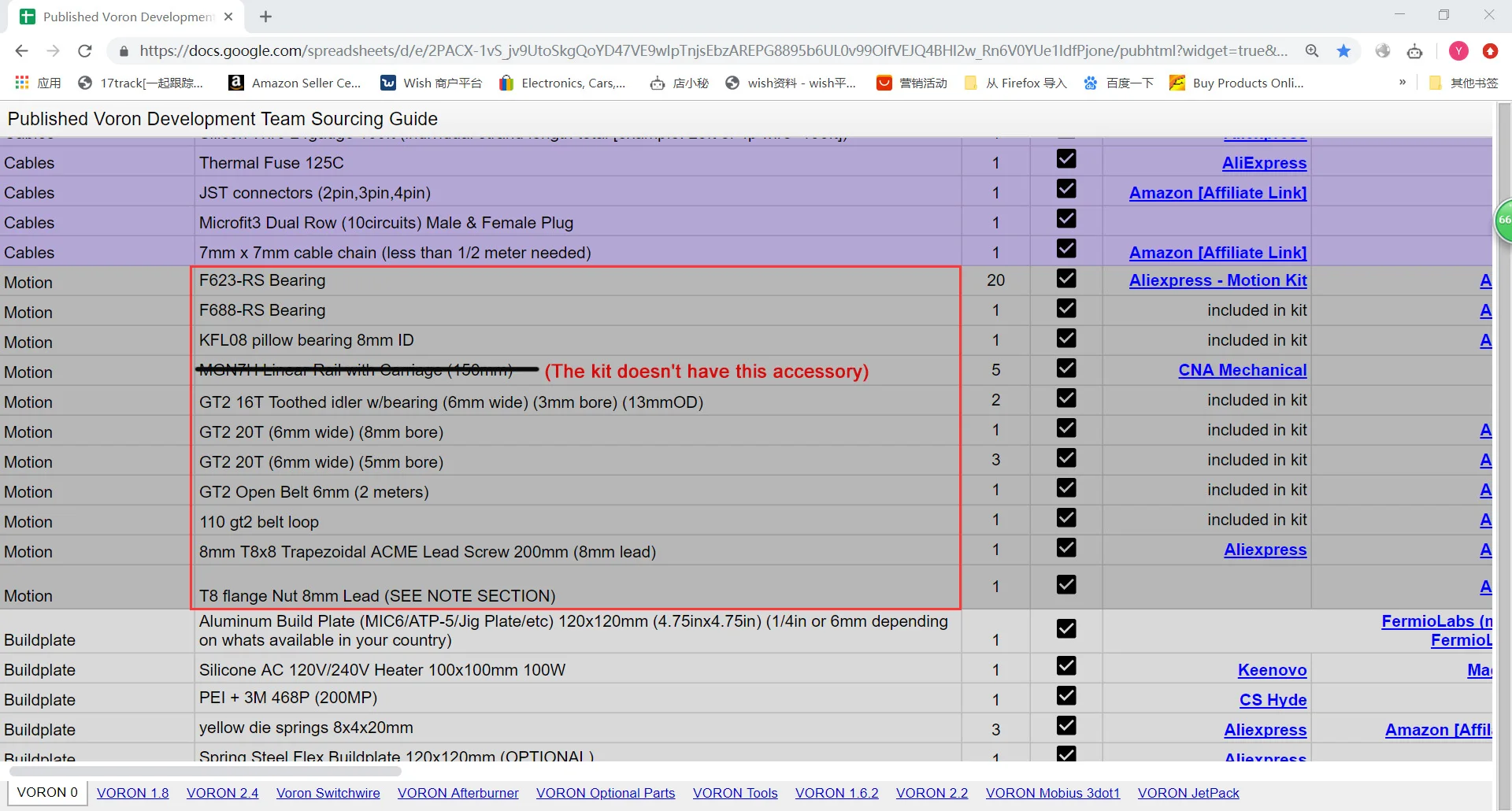 (If you need other Versions motion parts set please click as follow link.)VORON 0 Motion Parts Kit---