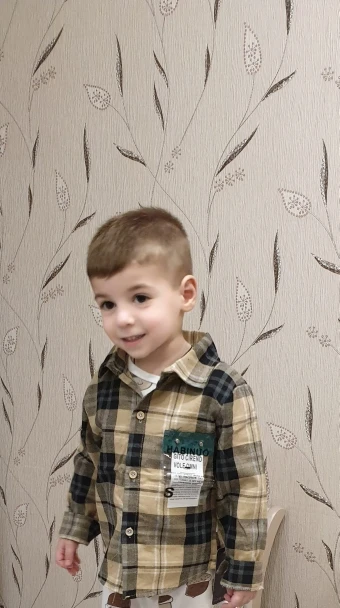 рубашка супер!!! качество.но на рукавах нет пуговиц очень большие только подкручивать на3.5года105/16кг 5т село отлично.доставка быстрая.заказом довольна.спасибо прадовцу