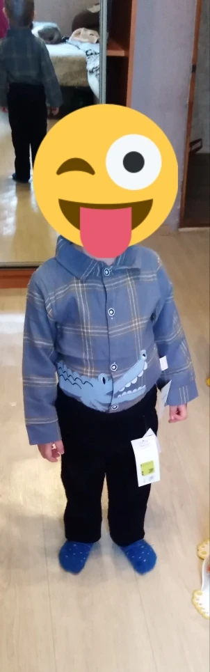 Рубашка хорошая,заказала сразу 3 ,все нормальные,за эти деньги хорошие. Теплая,сын почему то решил,что эти ярлыки лишние и сорвал. Ну да ладно,на каждый день в садик самое то.На мальчика ростом 99 большеваты. Шли долго больше месяца. Рубашки без дефектов,только вот на этой белая печать сзади не очень ровная и какие-то лишние вкрапления.