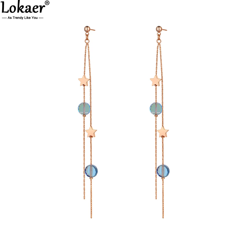 Женские Висячие серьги Lokaer из нержавеющей титановой стали, богемные серьги-подвески со звездами и кристаллами фианита, ювелирное изделие, E20075