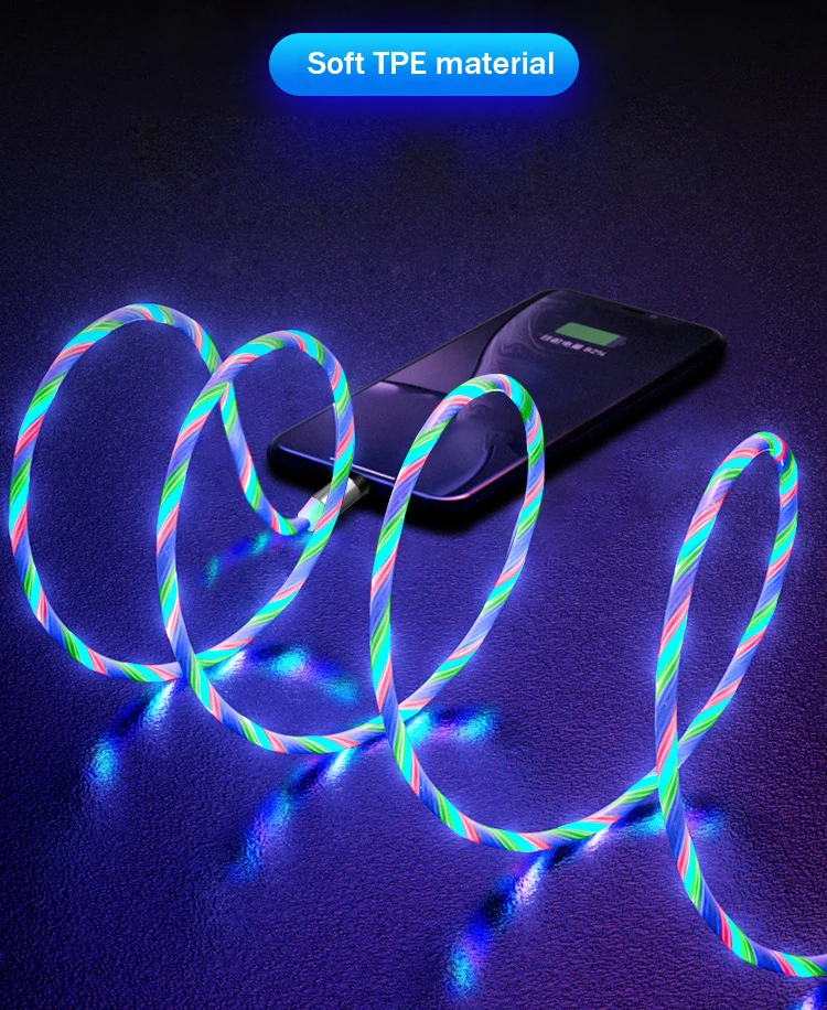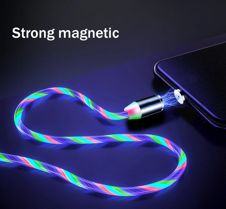 Магнитный кабель USB Type-C Micro, светодиодный кабель с подсветкой, кабель для быстрой зарядки USB, зарядный кабель, провод для iPhone, Huawei, Samsung