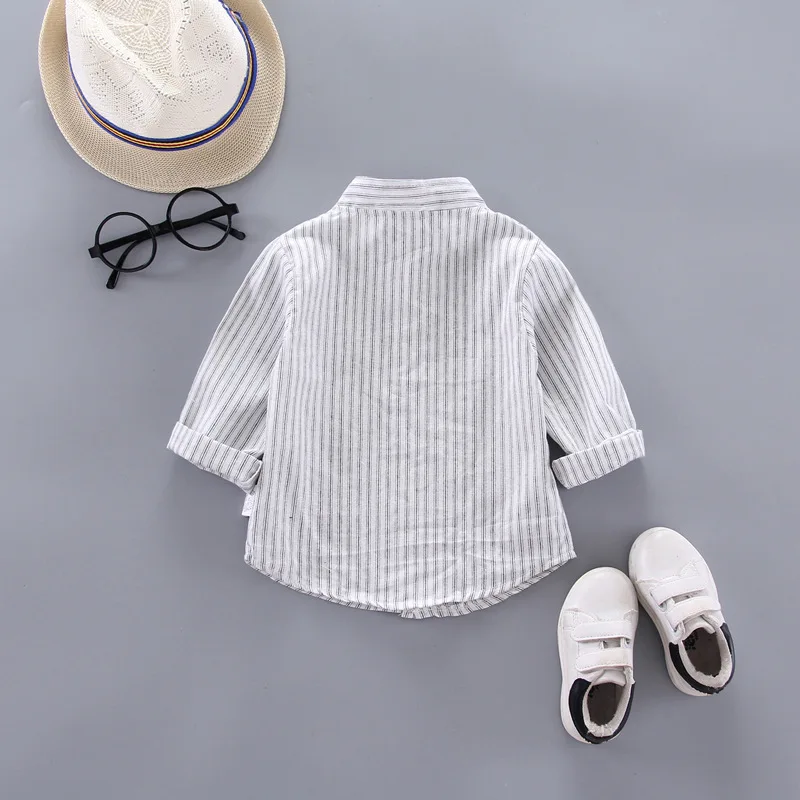Весенние тонкие рубашки для маленьких мальчиков, полосатые рубашки с длинным рукавом и принтом, детские топы, футболки, рубашки, Повседневная Блузка