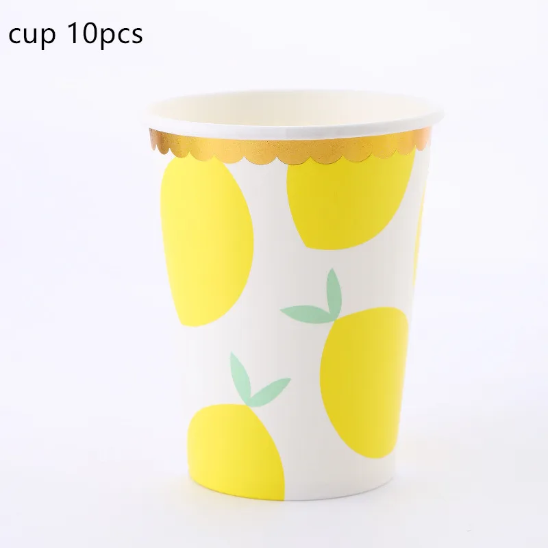 Горячая одноразовая посуда вечерние поставки Бумагапластиначашкисалфетки из желтых лимонов на день рождения Декорации на свадьбу, вечеринку детского дня рождения