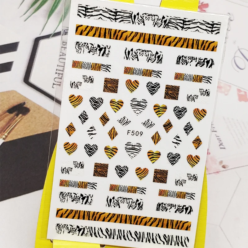 3D наклейки для ногтей, наклейки с тигровым узором в полоску, украшения для ногтей, слайдеры, аксессуары для маникюра, украшения для ногтей
