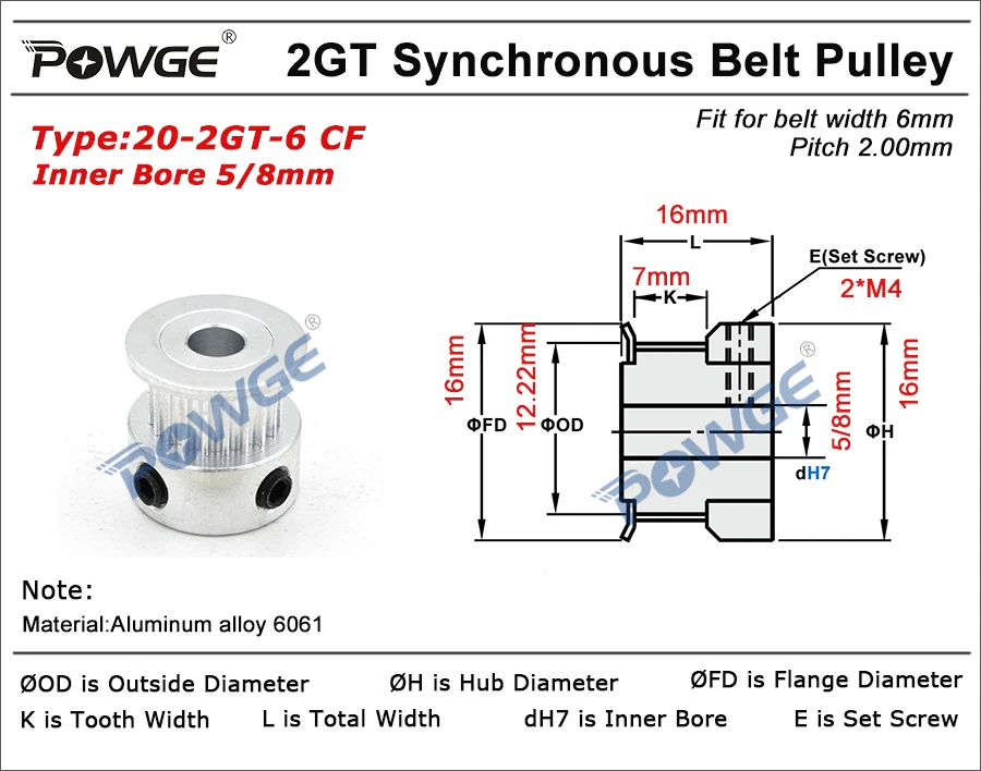 Диаметр: 5 ммФланец: двойнойМатериал: алюминиевый сплавФиксированный режим: 2 * M4Подходит для ширины ремня: 6 мм