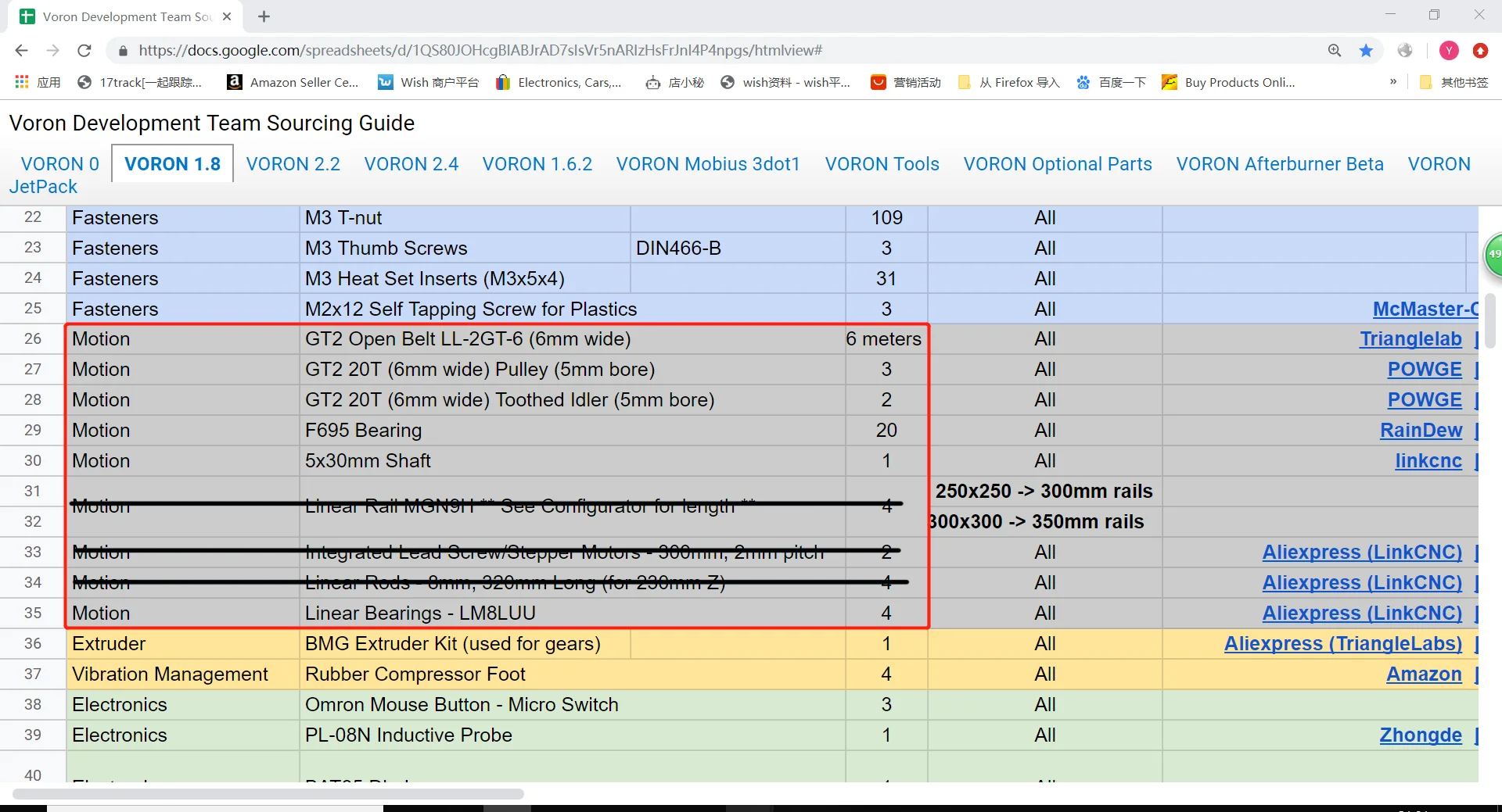 Новый VORON 1,8 движение части набор включаетGT2 открытый ремень 6 мм (6 метров)+(3 шт./лот GT2/2GT 20T шкив диаметр 5 мм) + (2 шт./лотGT2 20T (ширина 6 мм) зубчатое колесо (диаметр 5 мм) +Линейные подшипники-LM8LUU +(20 шт.F695 RS подшипников) + (1 шт./лотВал 5x30 мм) 3D принтер