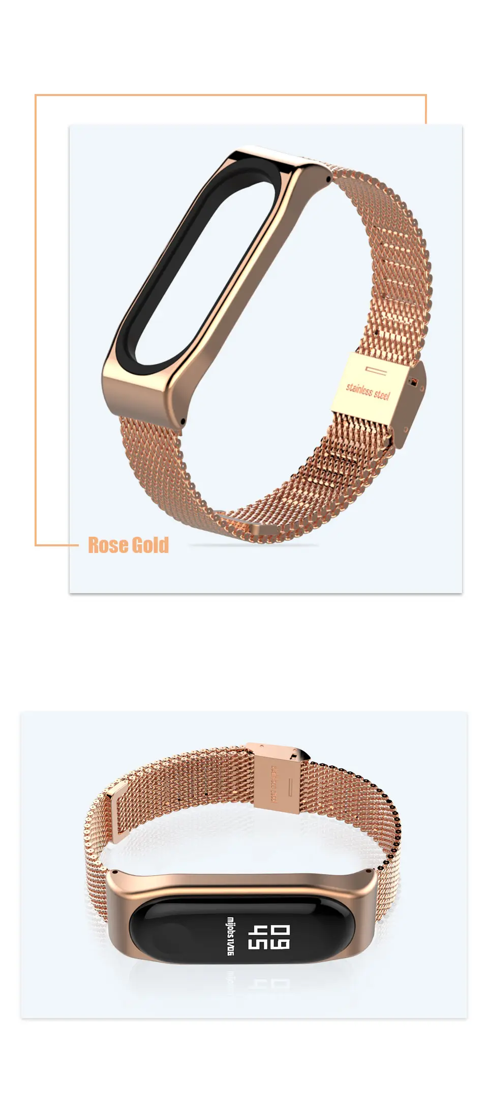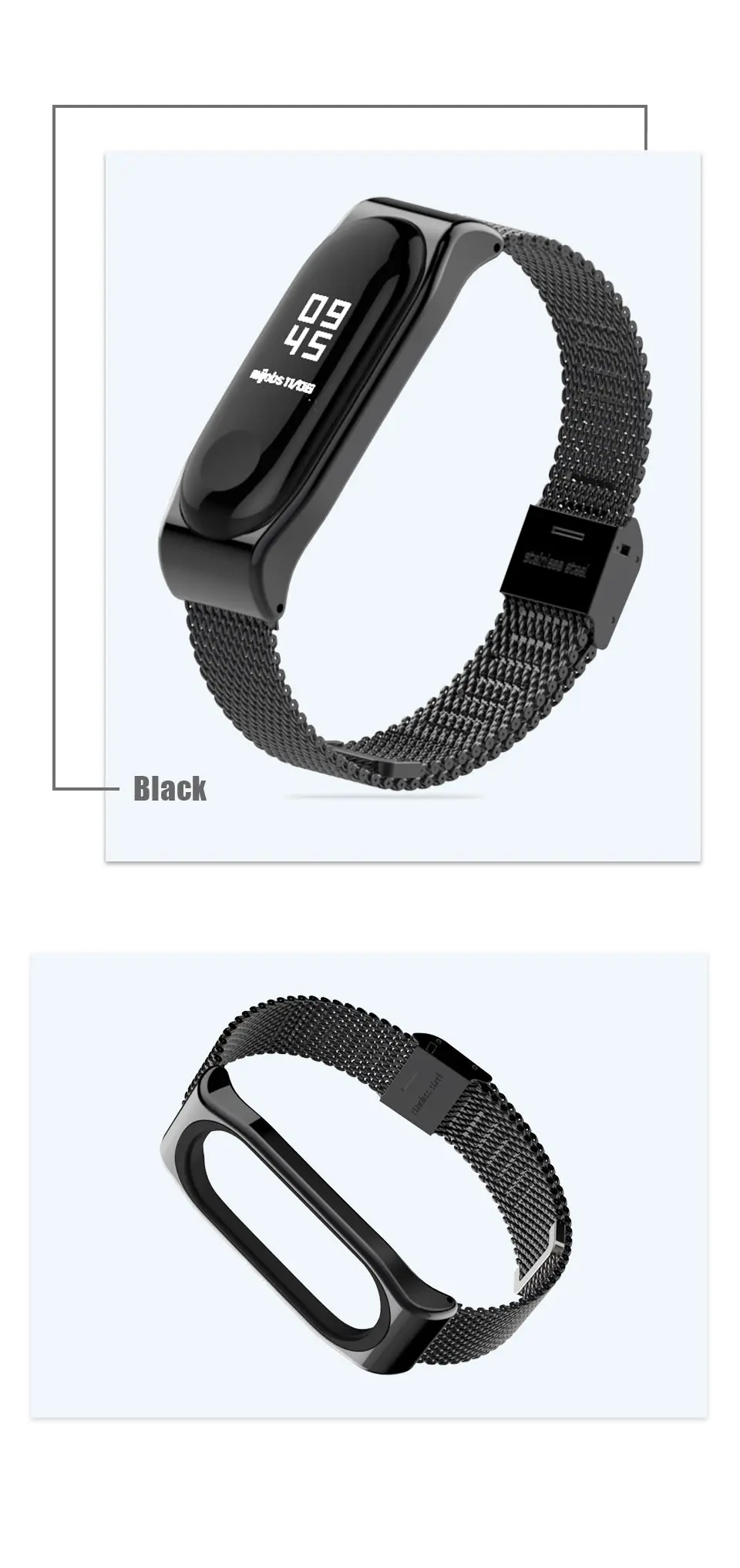 Тип: Миланский металлический браслет для xiaomi mi band 3/4 Материал: нержавеющая сталь Цвет: черный, серебристый, золотой, розовое золото Особенности: легко носить, защита от потери Окружность запястья: 155-225 мм