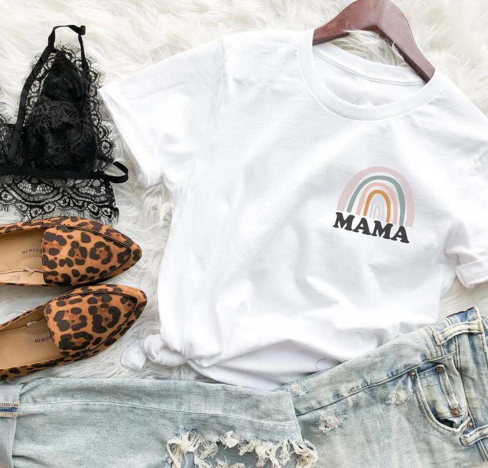 Футболка Rainbow Mama Женская на день матери, Повседневная футболка из 100% хлопка в стиле ретро, женская футболка в стиле гранж, женская футболка в эстетическом стиле-Белый Топ