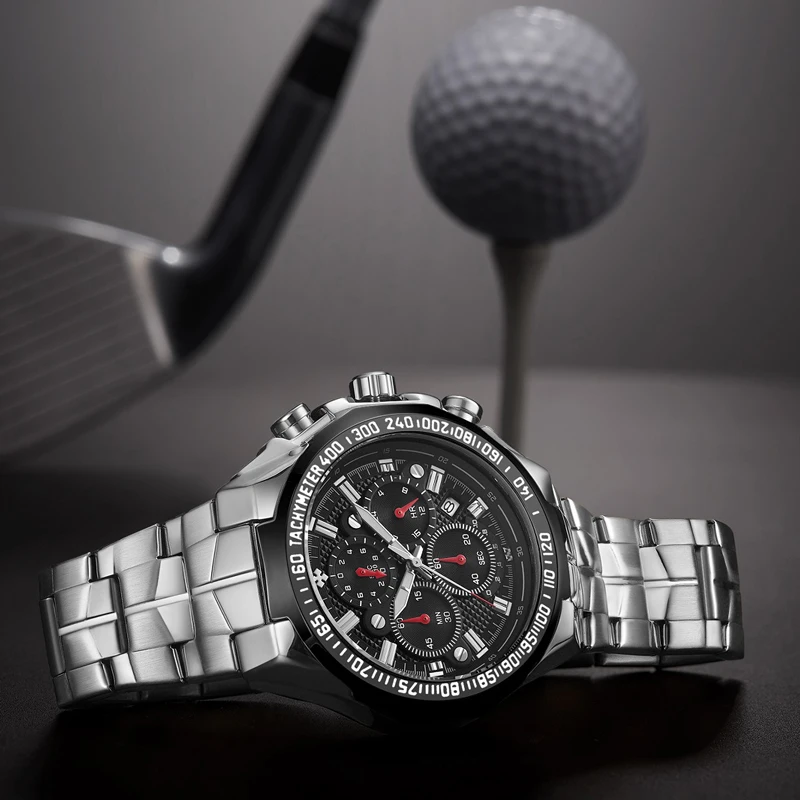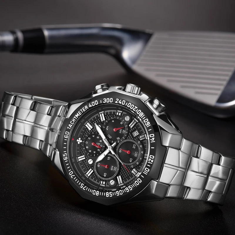 Часы наручные мужские с большим циферблатом, из нержавеющей стали
