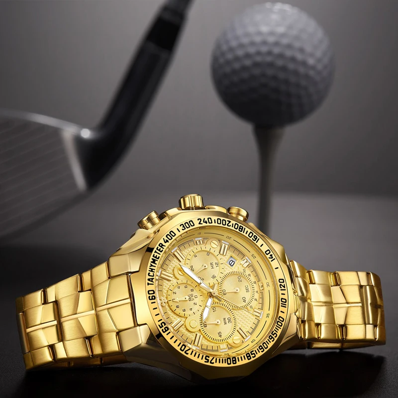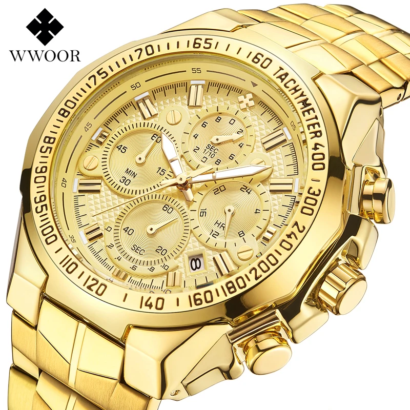 Часы мужские WWOOR наручные с хронографом, брендовые Роскошные с большим циферблатом, золотистые, 2019, 2019