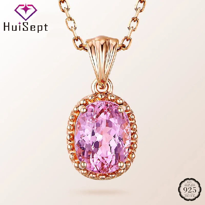Женское Ожерелье HuiSept, ювелирное изделие овальной формы из серебра 925 пробы с розовым цирконием, украшение для свадебной вечеринки, оптовая продажа