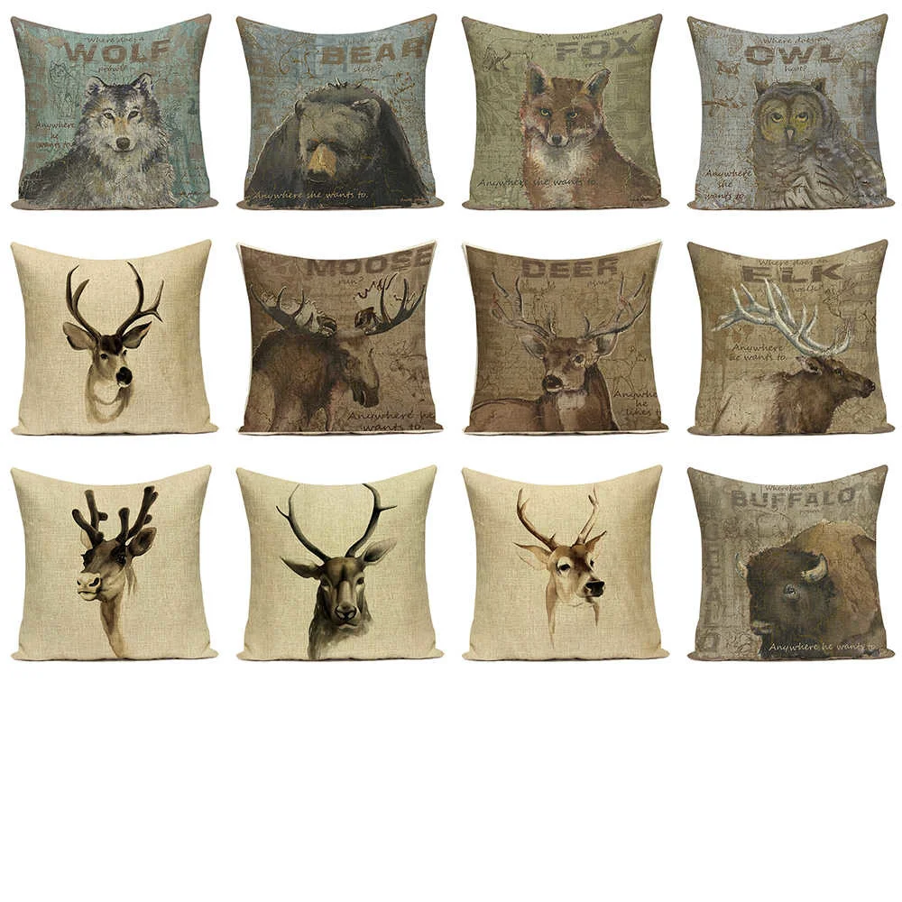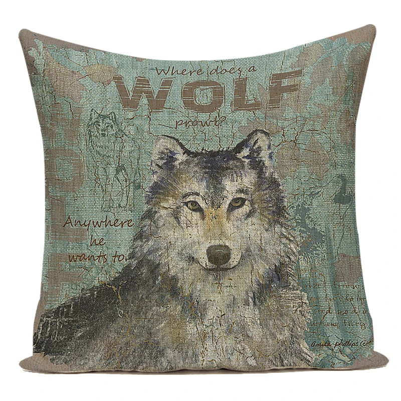 Винтажный серый Чехол на подушку, украшение для дома, подушки, чехол с изображением оленя серого волка, подушки с изображением животных чехол s, льняные диванные подушки на кровать, чехлы
