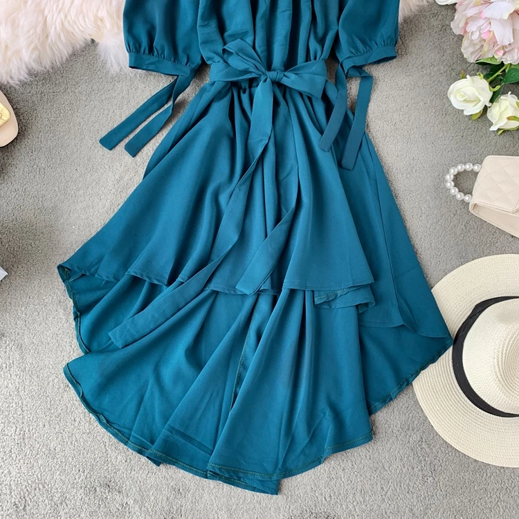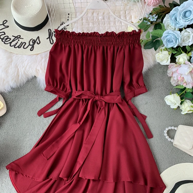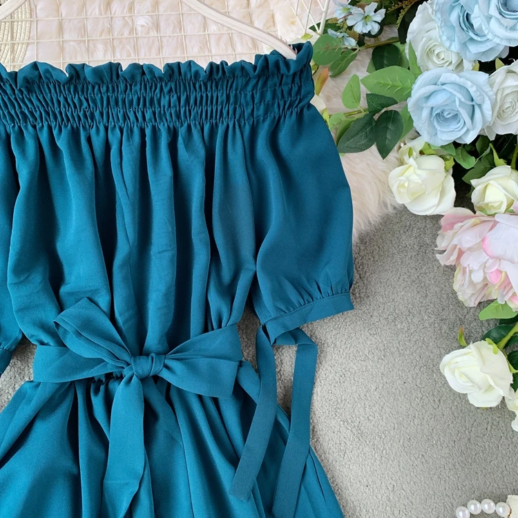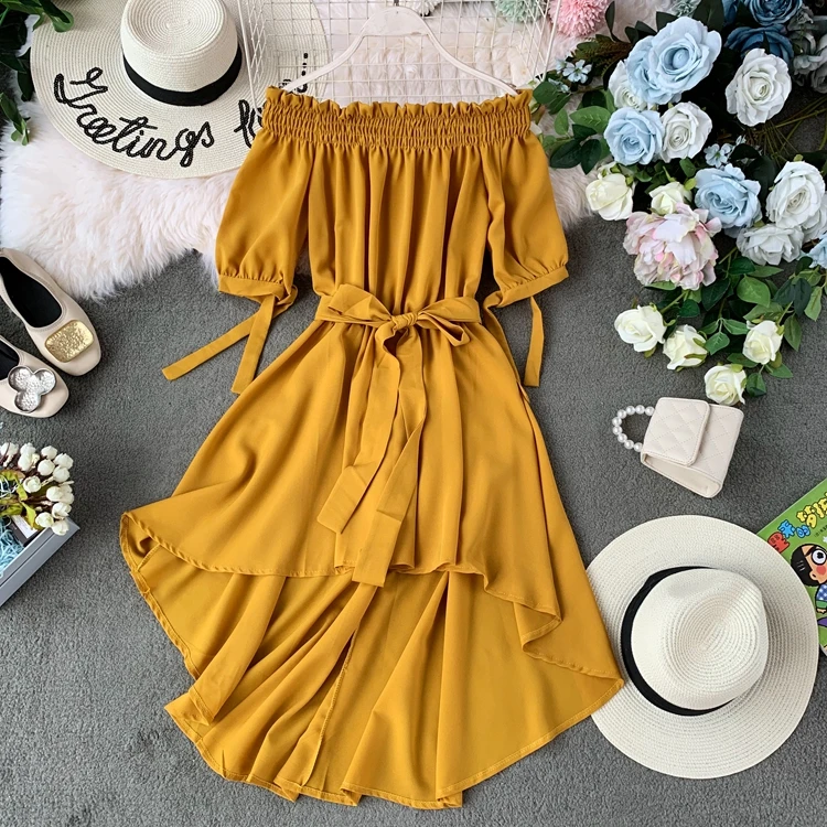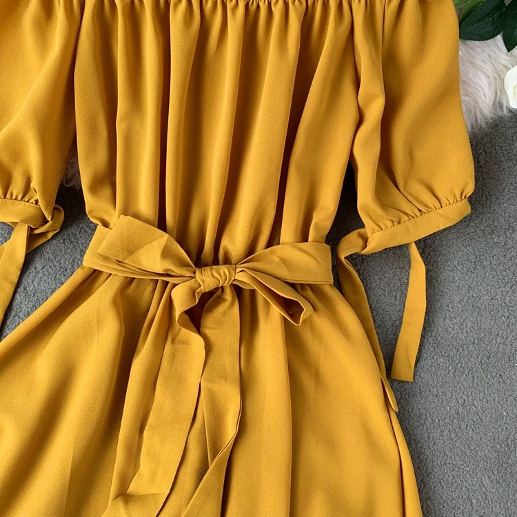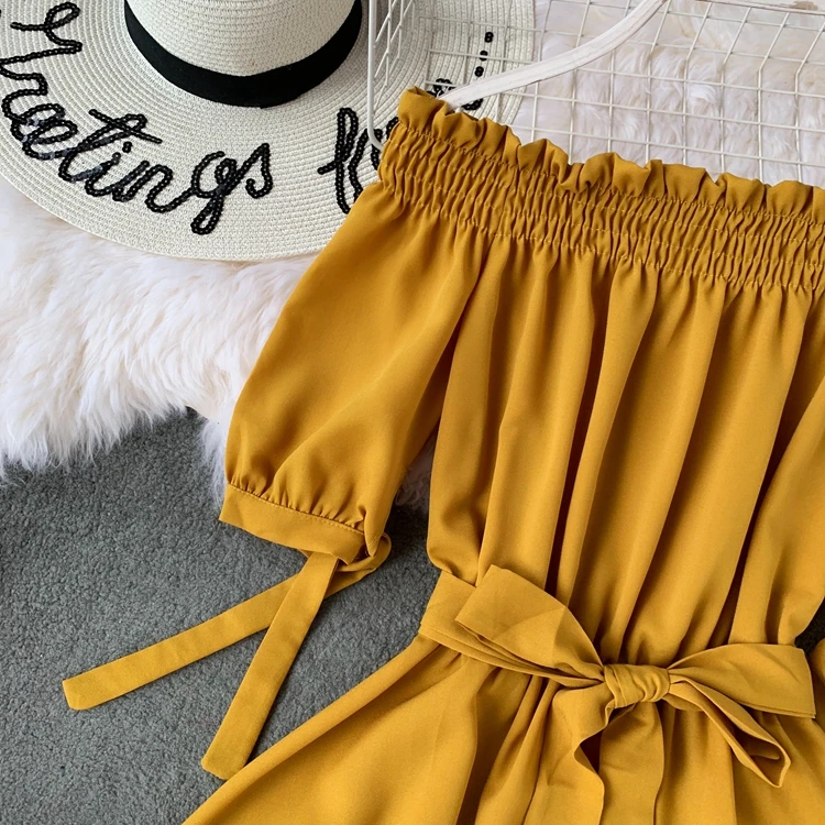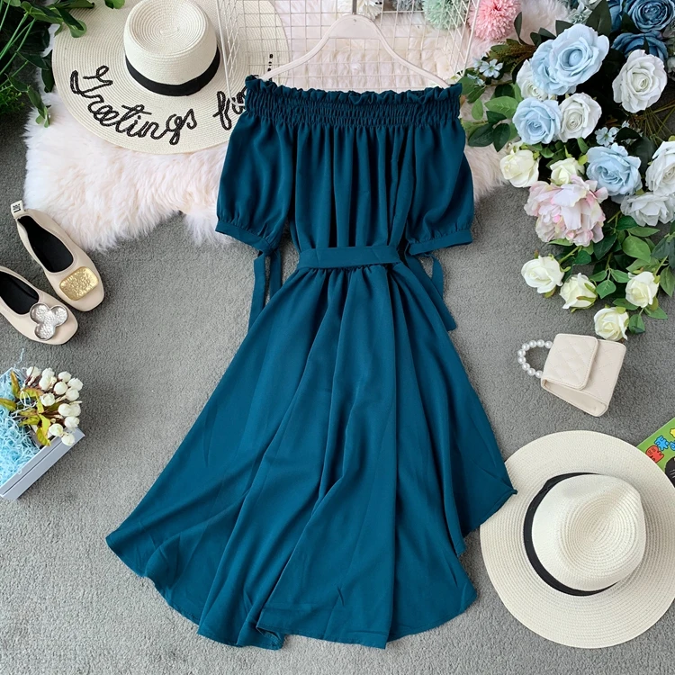 Элегантное платье миди с открытыми плечами, летние платья а-силуэта с воротником-лодочкой и высокой талией для вечерние НКИ, Женский вечерний винтажный сарафан, праздничный наряд
