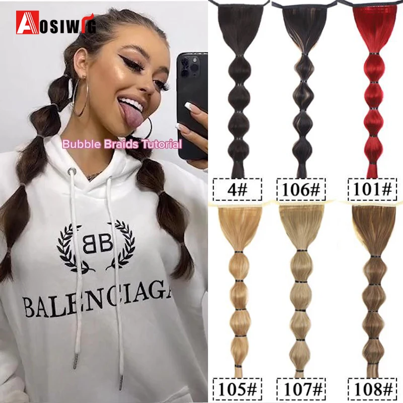 Aosiwig синтетические косички с пузырями, прямой хвост, кулиска волос, искусственные натуральные заколки для волос для женщин