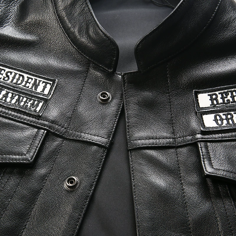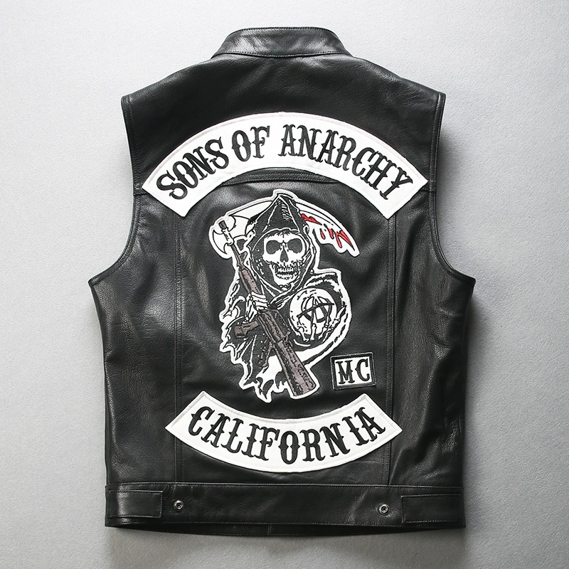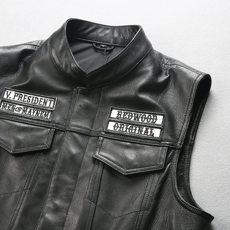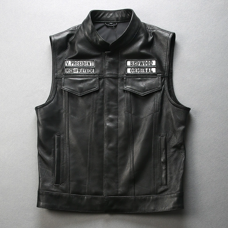 HLZZ читает описание! Винтажный жилет азиатского размера из овечьей кожи, мужской стильный жилет с вышивкой