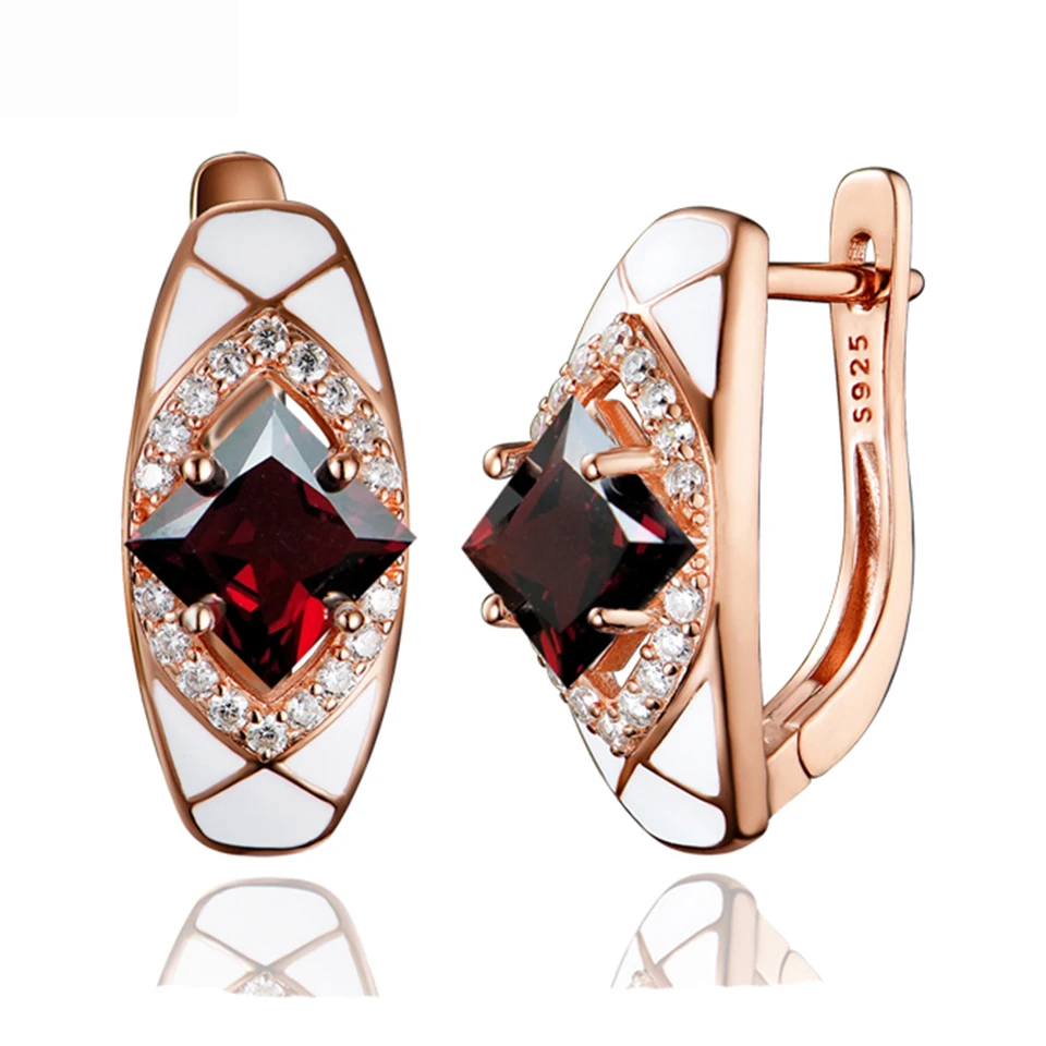 Женские серьги из серебра 925 пробы с натуральным гранатом