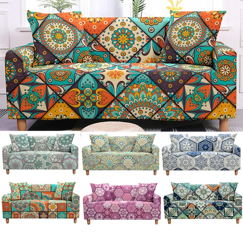Комплект эластичных чехлов для дивана с мандалой, эластичный чехол для дивана в гостиную, протектор для дивана, чехол для домашнего животного, чехол для углового дивана