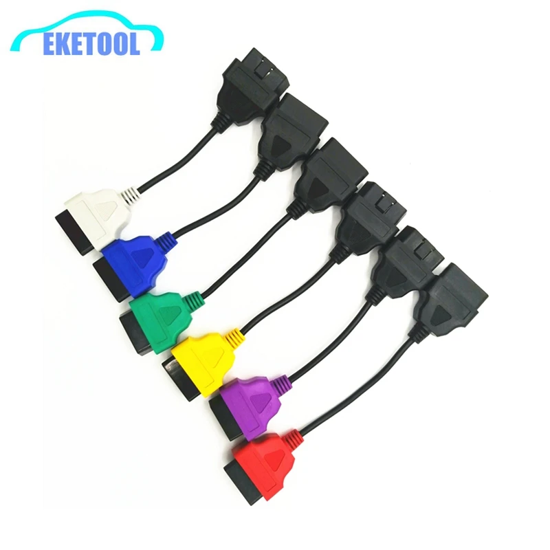6 шт. многоцветный 16-контактный кабельный разъем OBD2, многофункциональный адаптер для Fiat Alfa RomeoLancia